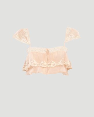 The Chloé fluid ruffled bralette is crafted from organic silk mousseline, detailed with delicate lace trims and cap sleeves. It fastens at the front with fabric-covered buttons for a refined finish.