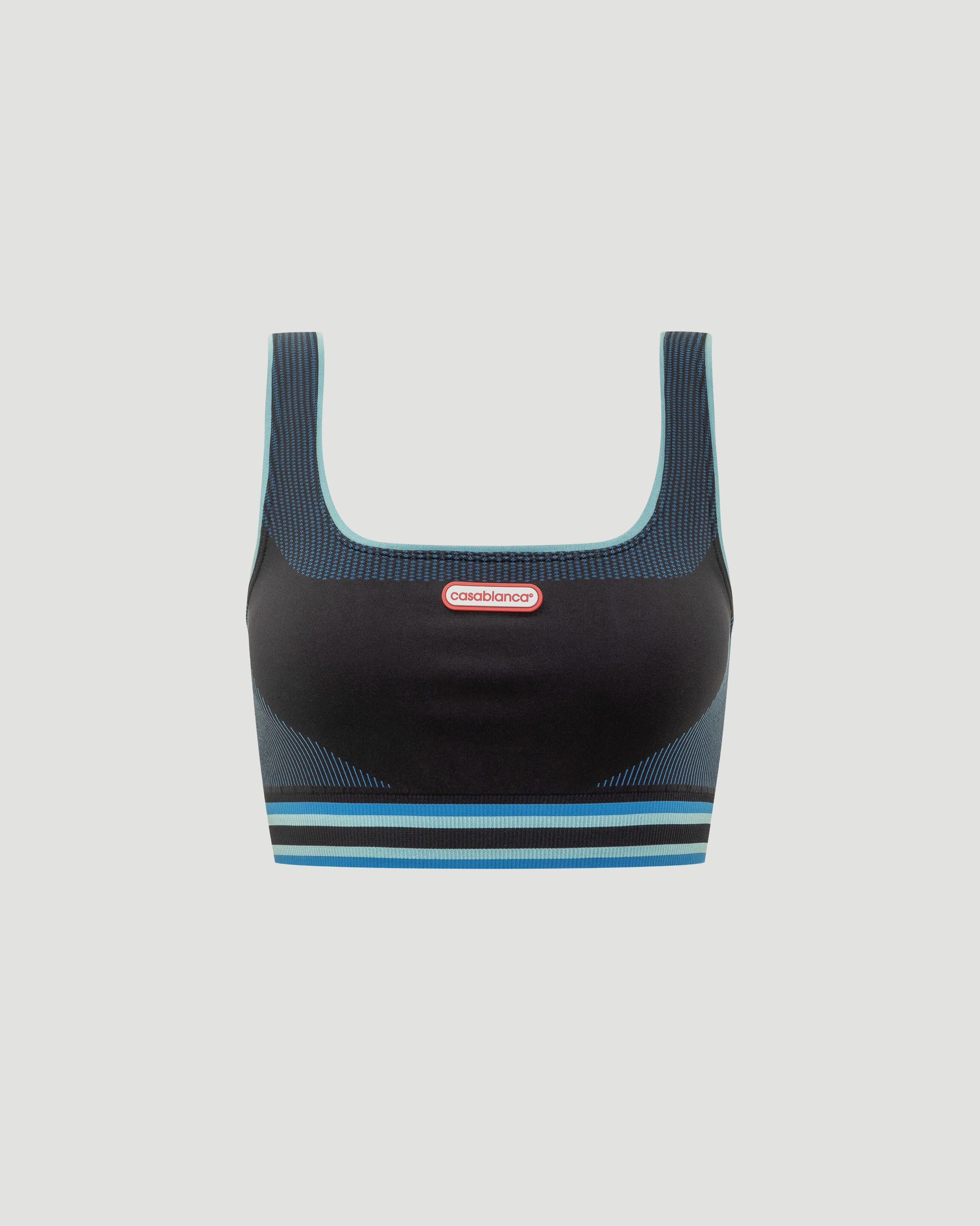Seamless bralette by Casablanca crafted from stretch fabric with a scoop neckline and panel detailing. Features the interlocking CC logo at the centre and an elasticised band with the Casablanca logo for a sporty, supportive finish.
