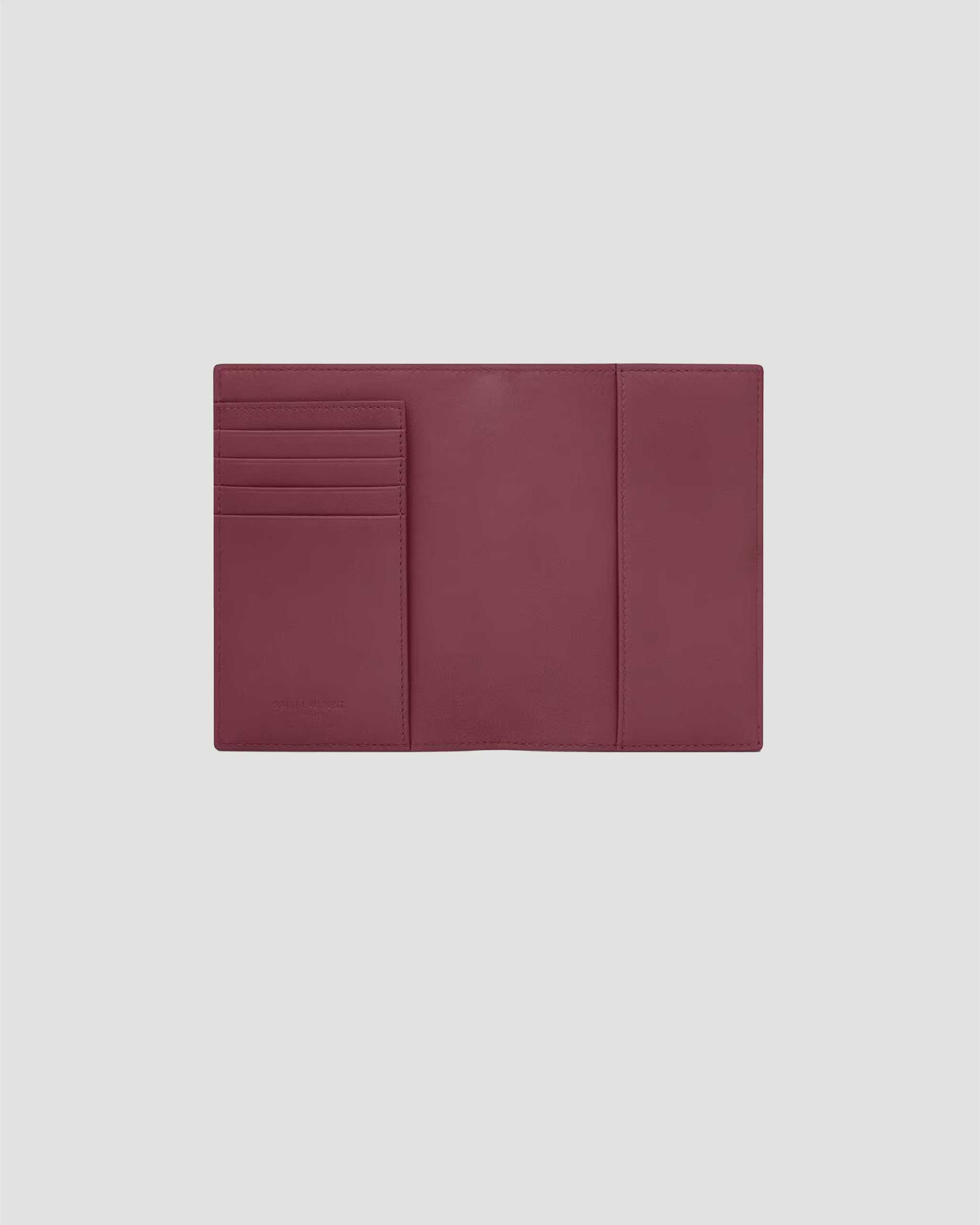 This passport holder by Saint Laurent is crafted with leather lining and accented by the Saint Laurent Paris signature. Features light bronze brass hardware, five card slots, and two dedicated passport compartments. A refined travel essential with understated luxury.