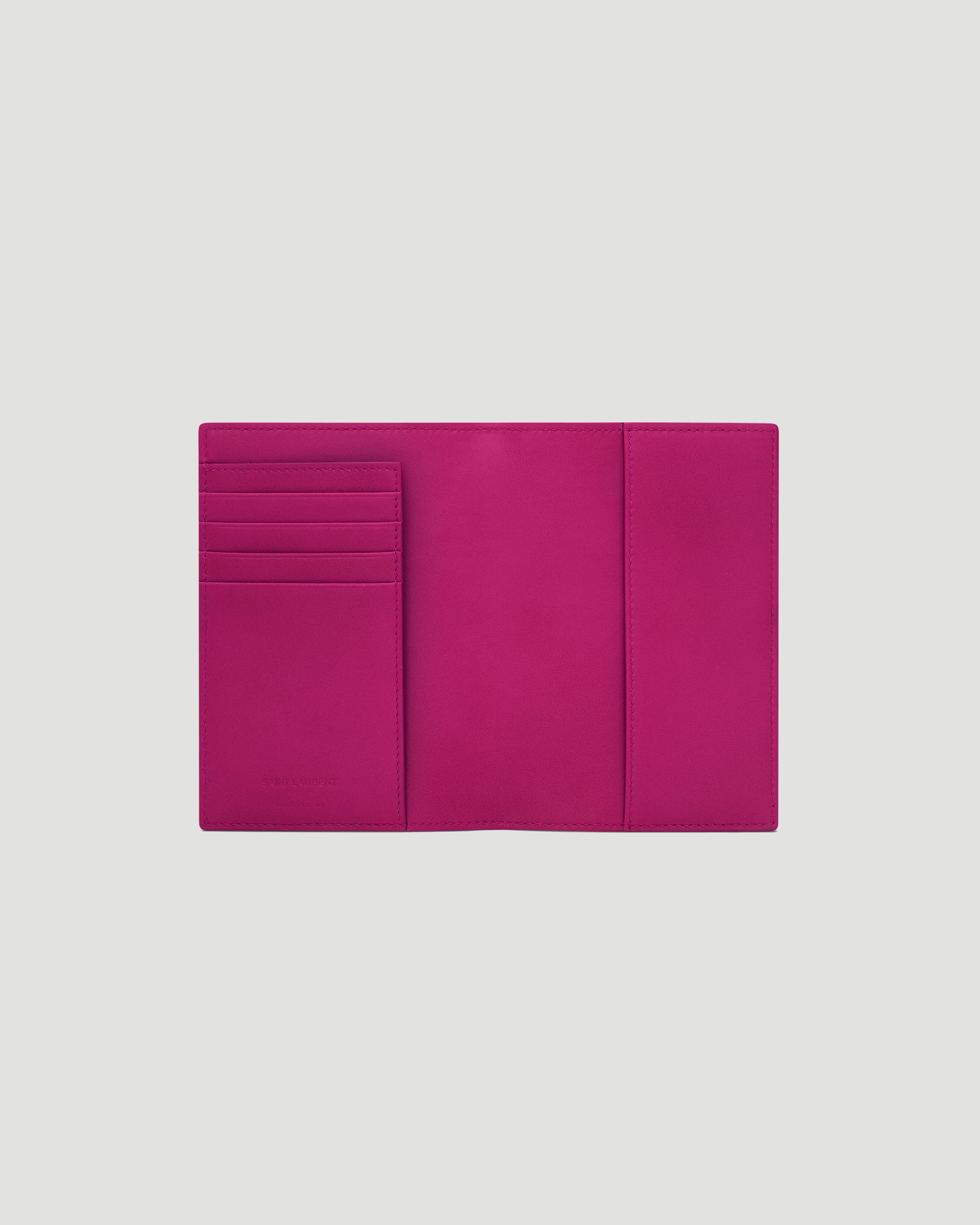 This passport holder by Saint Laurent is crafted with leather lining and accented by the Saint Laurent Paris signature. Features light bronze brass hardware, five card slots, and two dedicated passport compartments. A refined travel essential with understated luxury.