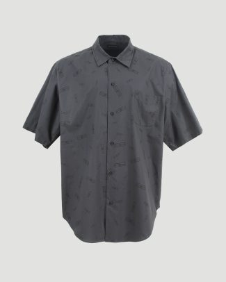 This short-sleeve shirt by Balenciaga is made from lightweight cotton in dark grey. Featuring a pointed collar, front button closure, and tonal logo motifs throughout.