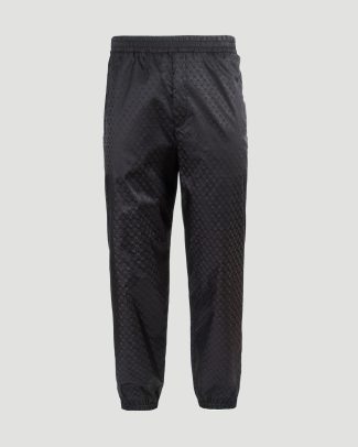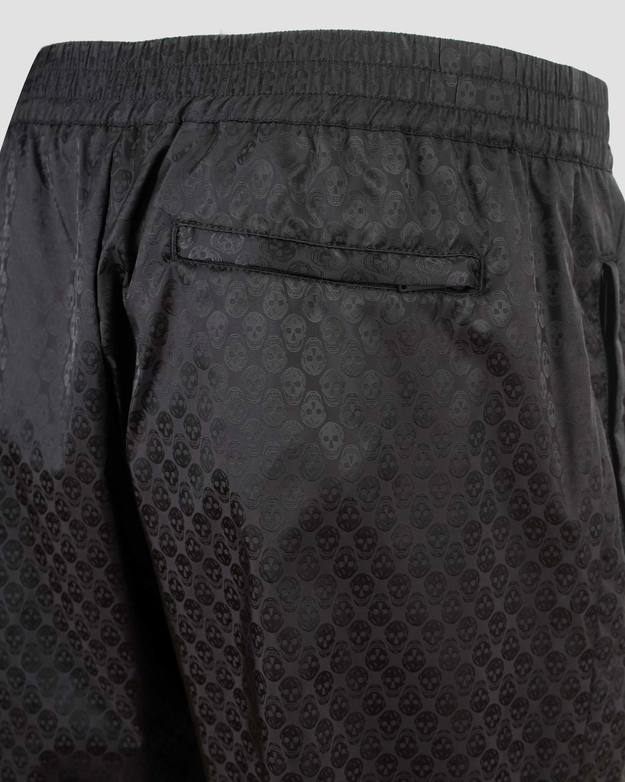 These joggers by Alexander McQueen are crafted from black light nylon with a skull jacquard pattern. They feature an elasticated waist, side zip pockets, and a back welt pocket.