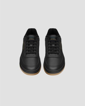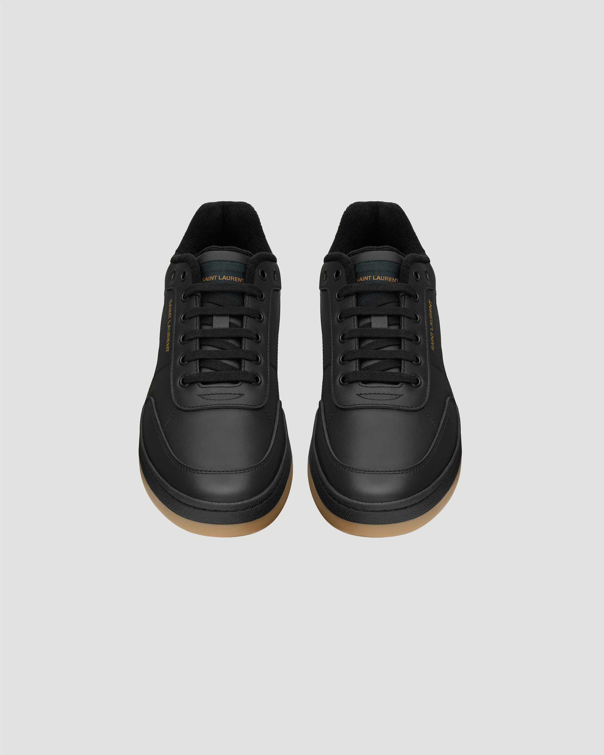These low-top lace-up sneakers feature a gold-tone Saint Laurent signature on the side and heel counter, with a signature patch on the tongue. They are finished with a rubber sole.