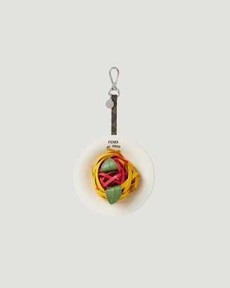 This Fendi bag charm is crafted from multicoloured leather in the shape of a fettuccine bowl. It is finished with palladium metalware and a logo clip.