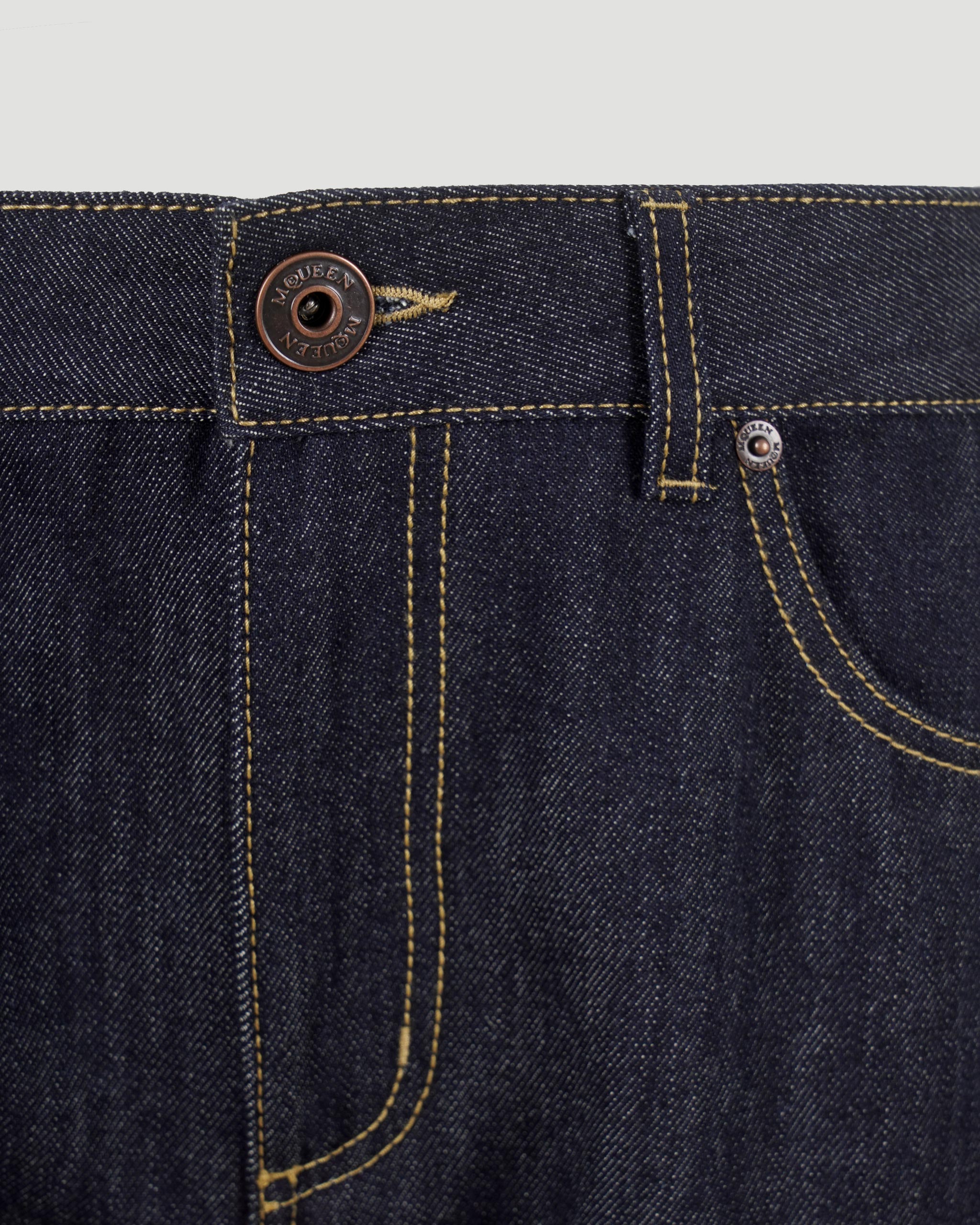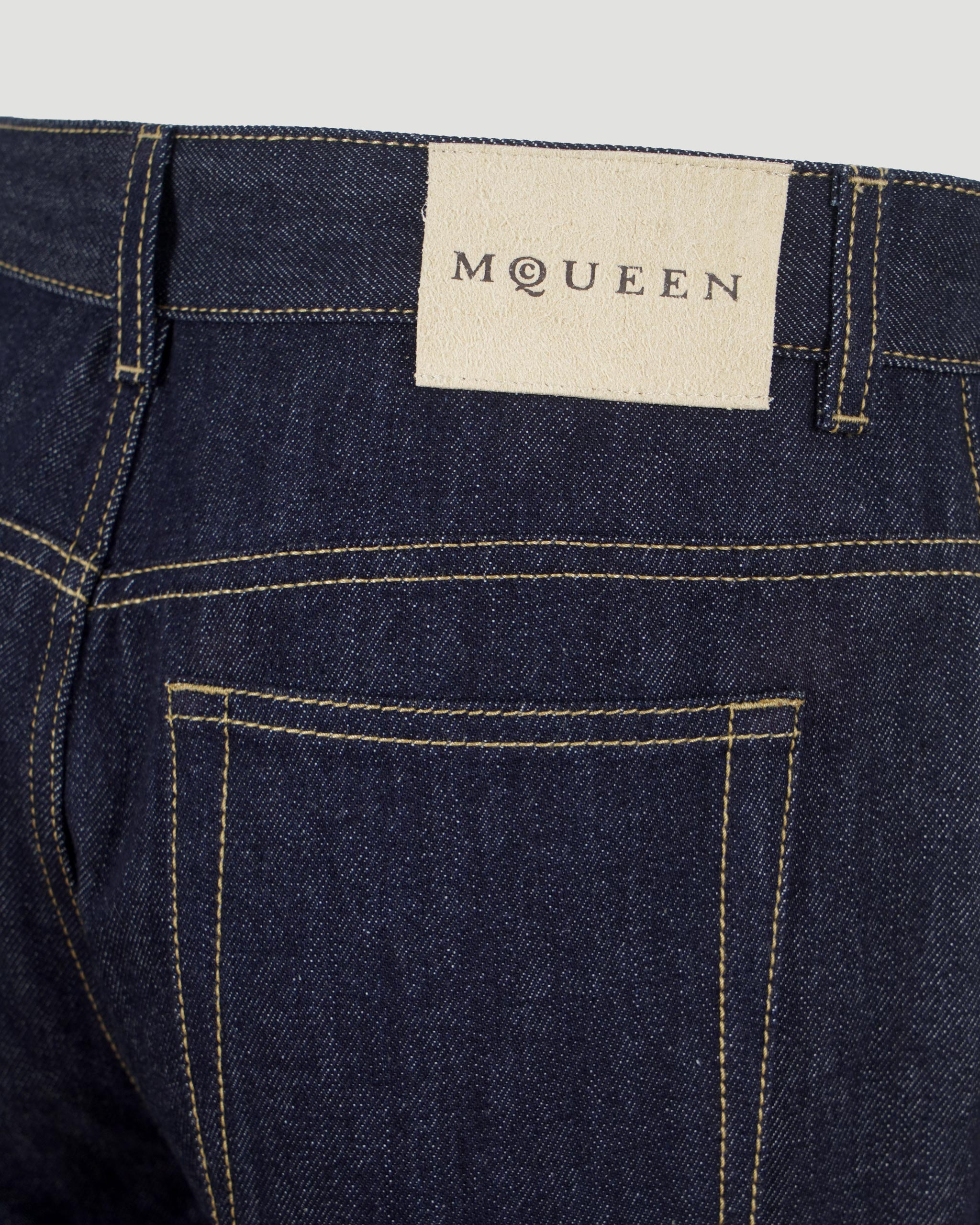 These Alexander McQueen denim jeans feature a straight leg and a five-pocket design with contrast stitching. Finished with belt loops and a front zip and button closure.