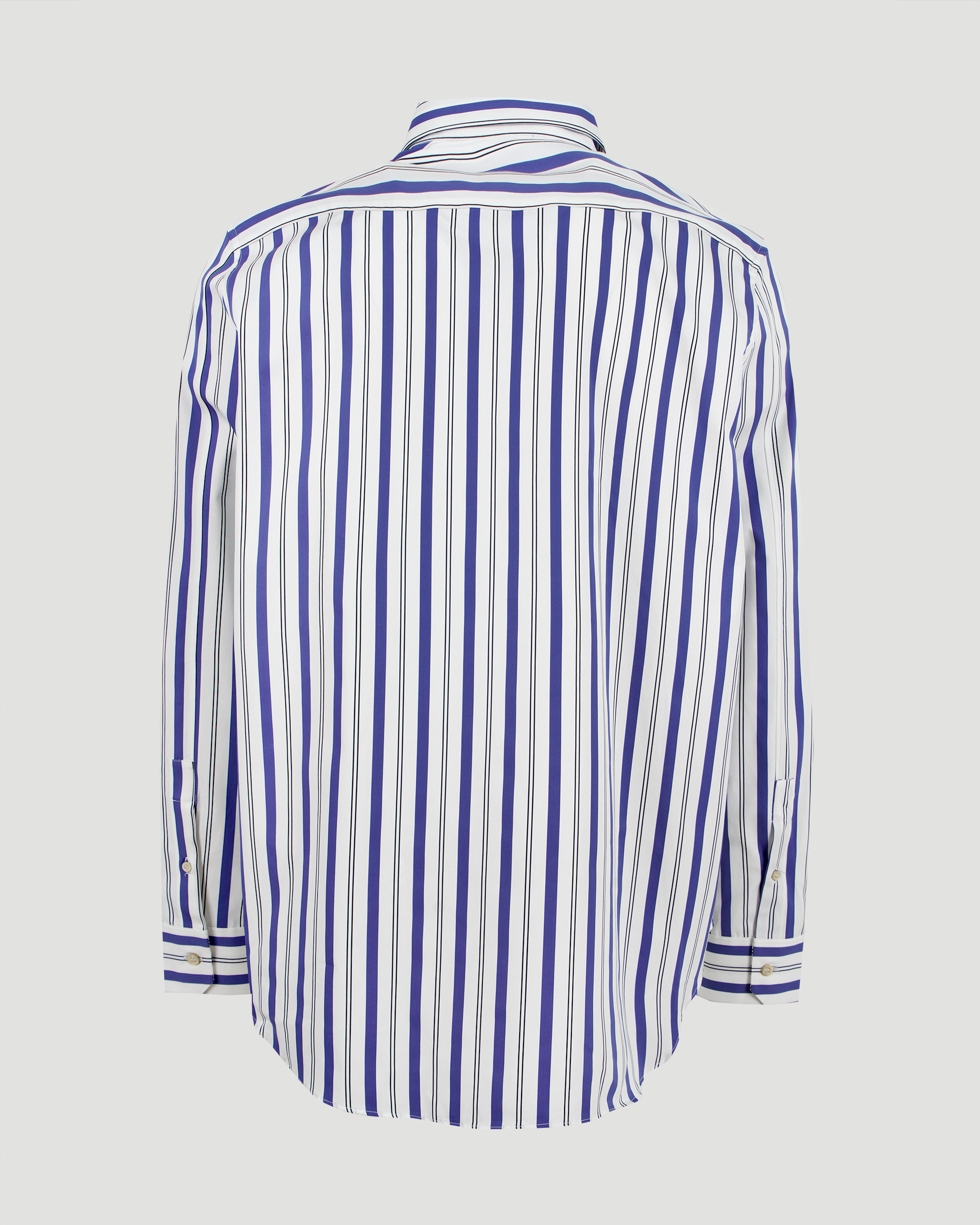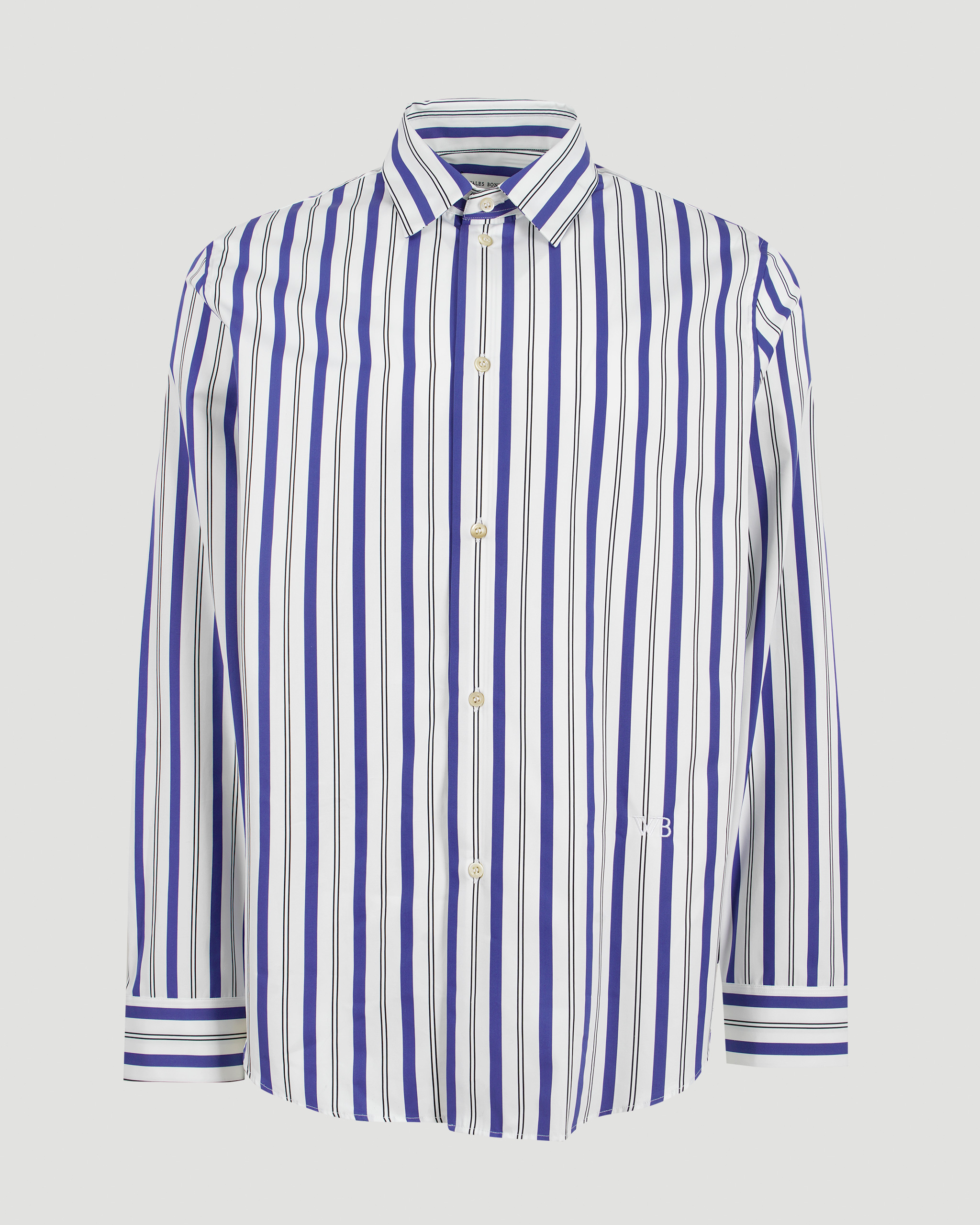 Classic cotton poplin shirt by Wales Bonner, featuring a signature front-cuff opening, mother-of-pearl buttons, and a tonal embroidered logo.