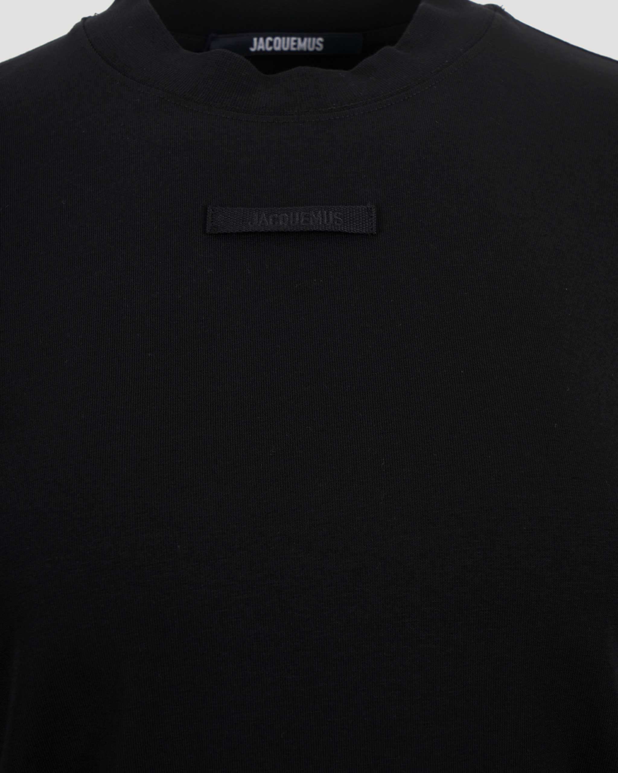 Grosgrain logo T-shirt by Jacquemus crafted from stretch cotton. Features a fitted silhouette, ribbed crew neck, long sleeves, and an embroidered grosgrain logo on the chest.