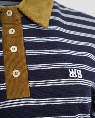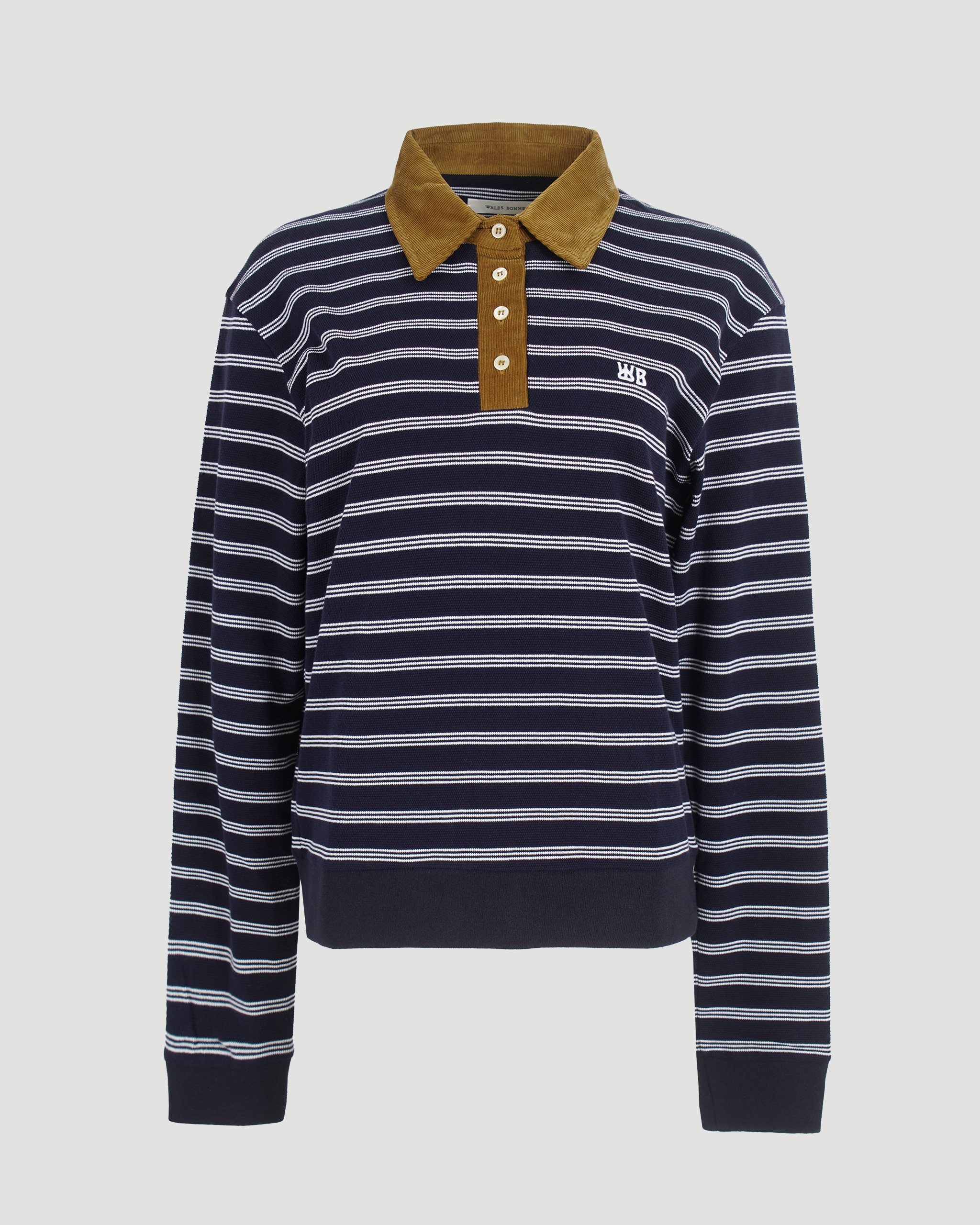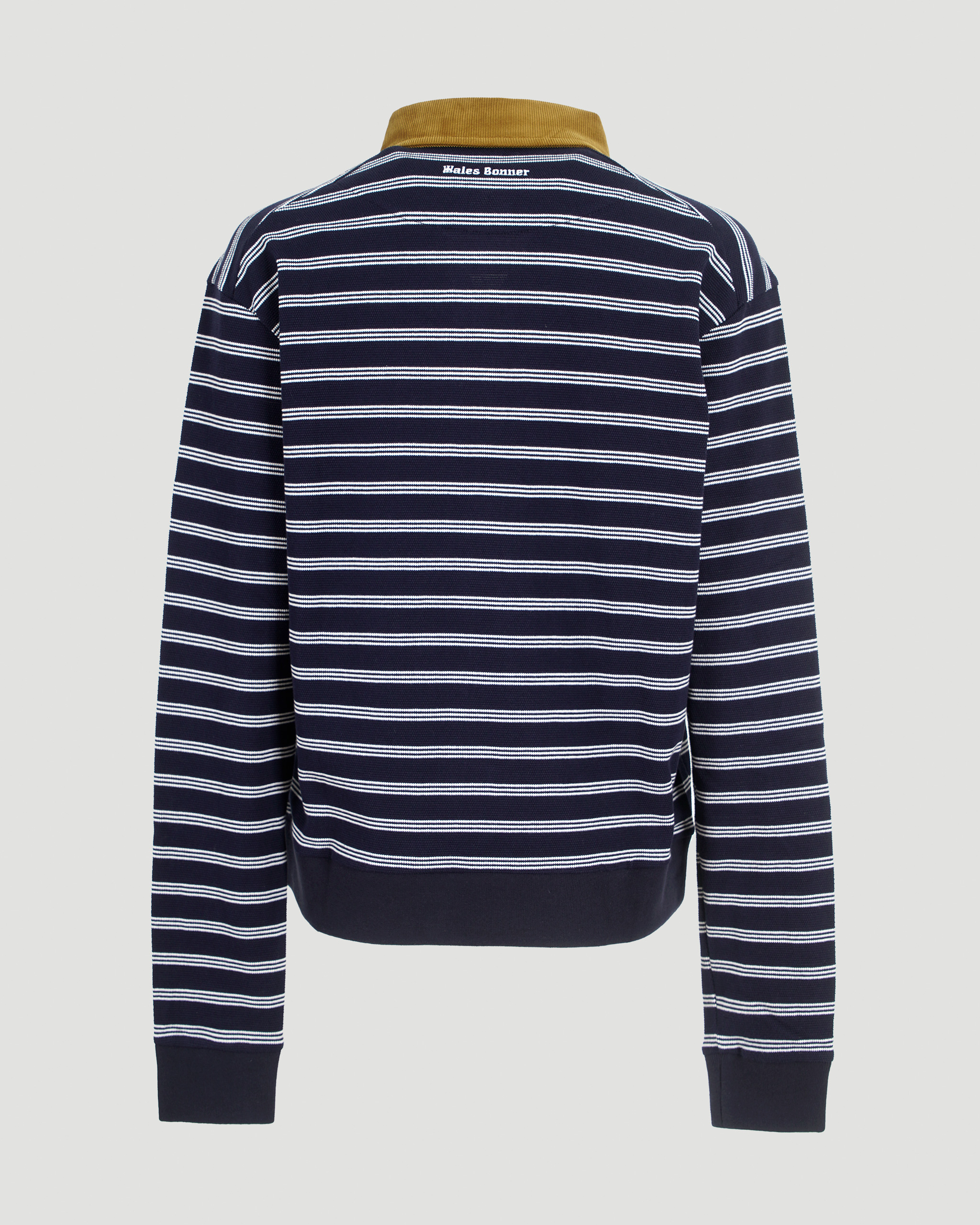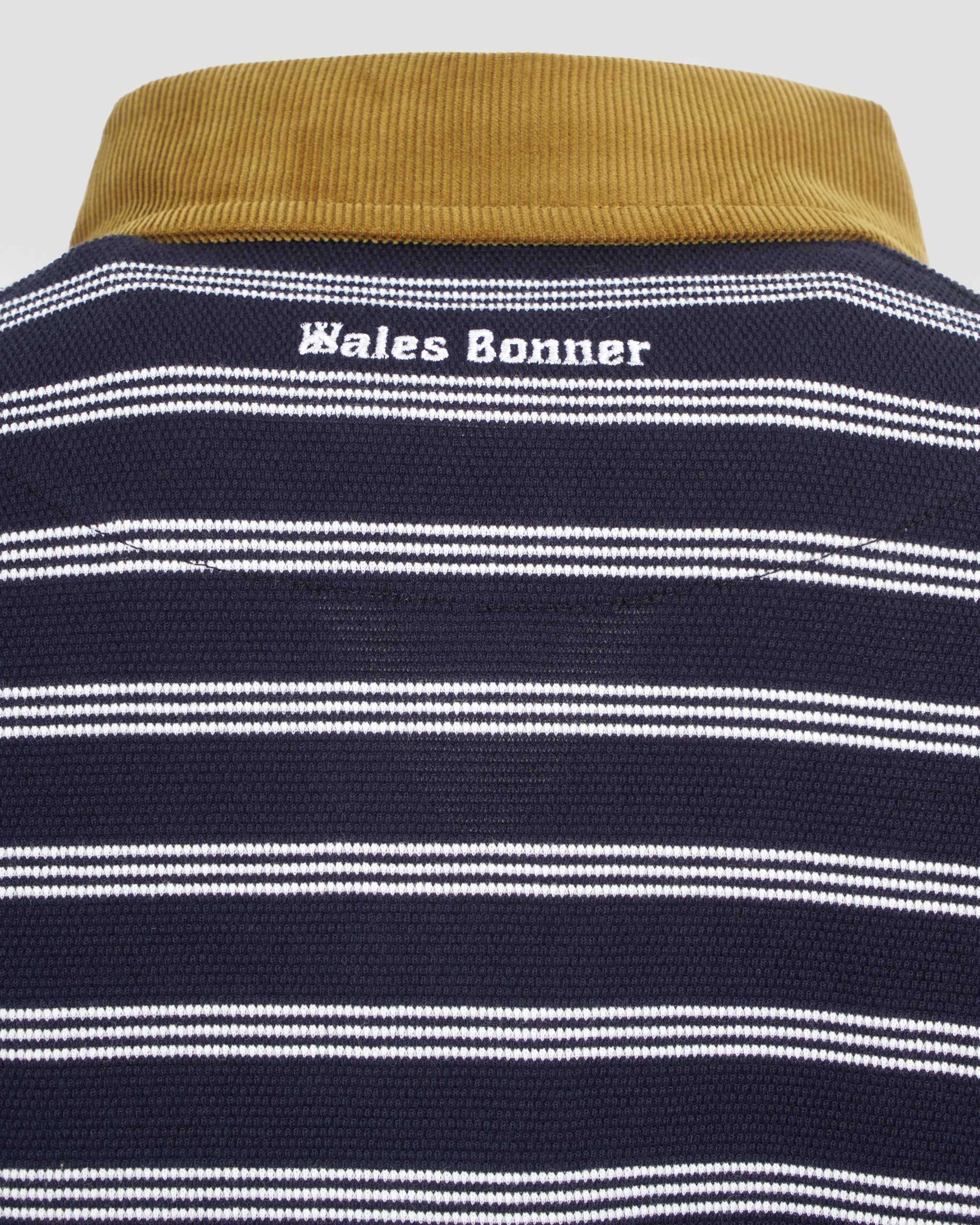 This polo top by Wales Bonner is crafted from striped Japanese piqué, featuring a contrast corduroy collar and a regular fit.