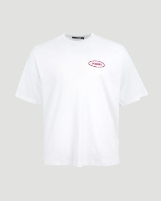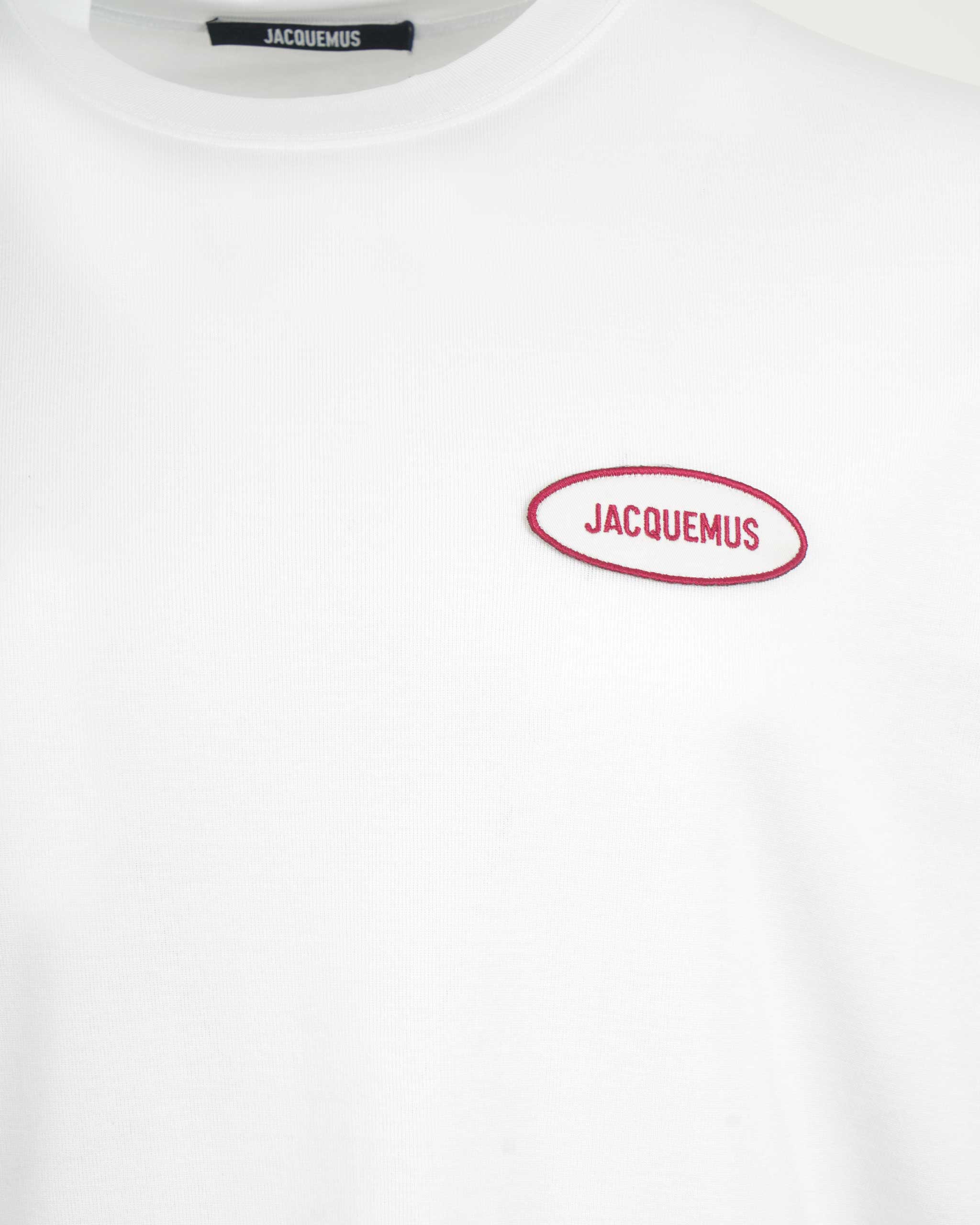 Logo patch T-shirt by Jacquemus crafted from fine-ribbed cotton jersey. Features a straight fit, ribbed crew neck, and an embroidered logo patch on the chest.