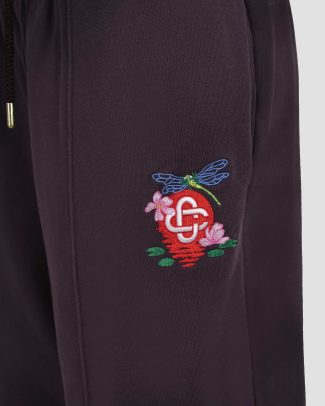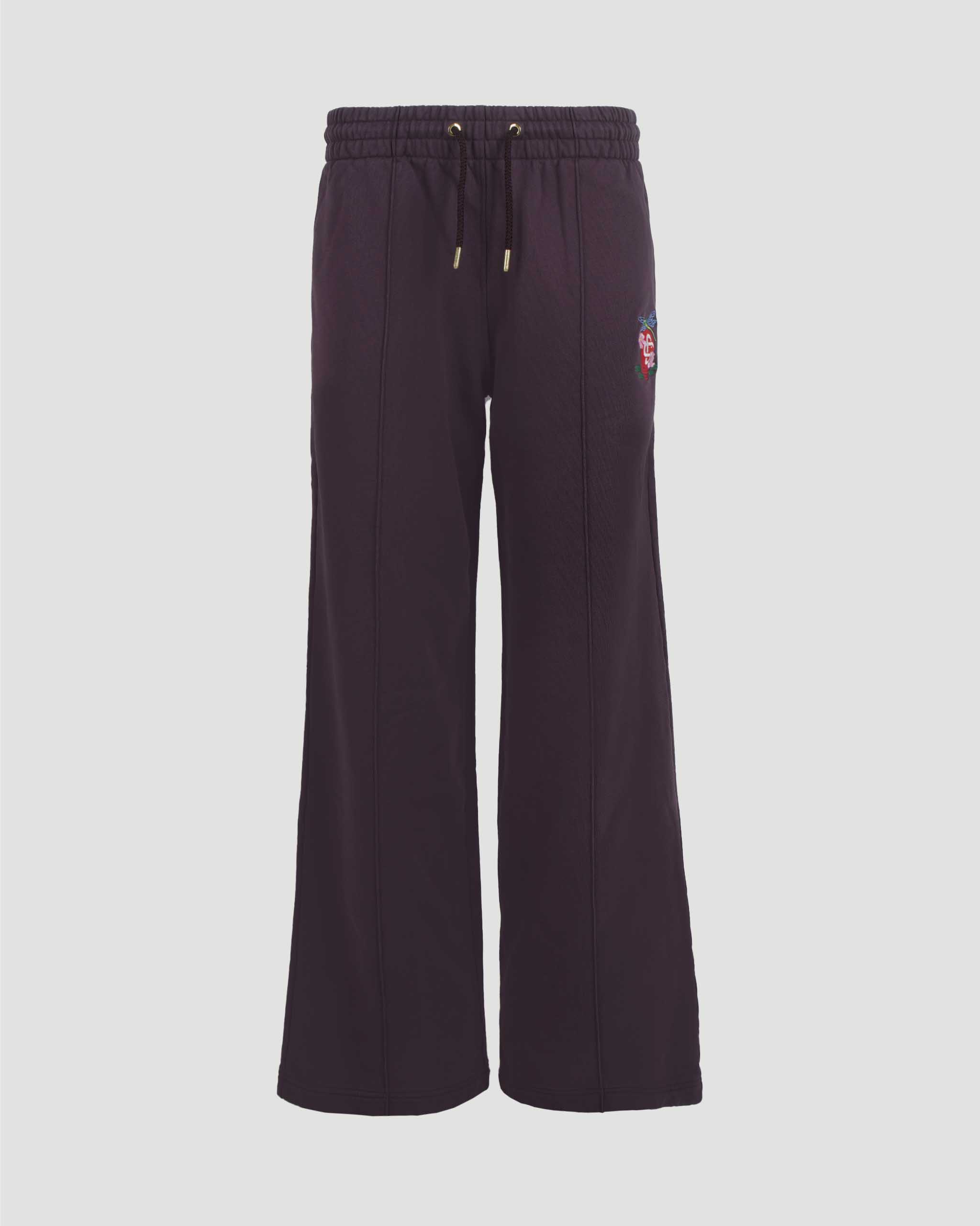 Track pants by Casablanca featuring an elastic drawstring waistband, embroidered logo, side pockets, back pocket, and a relaxed fit.