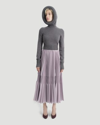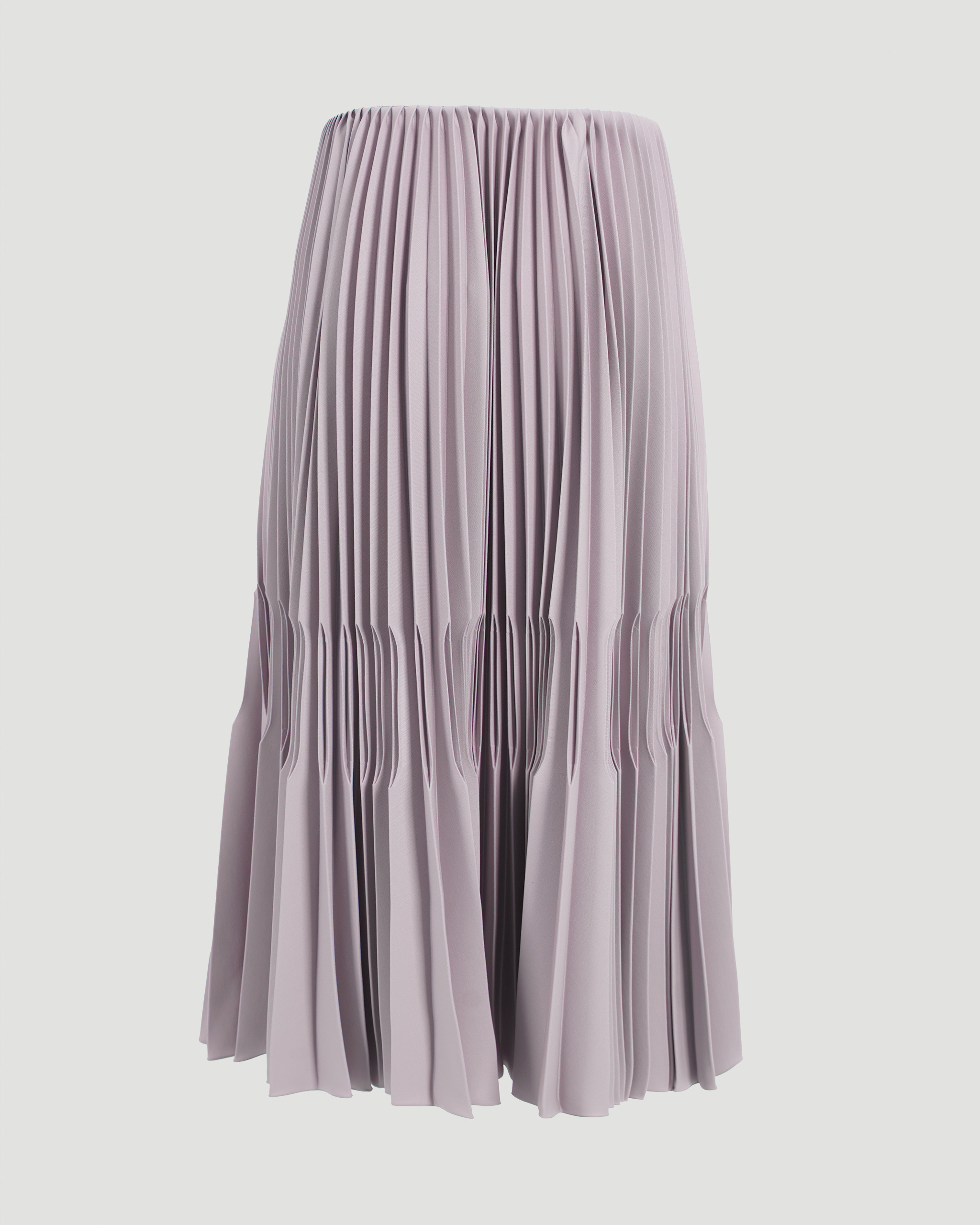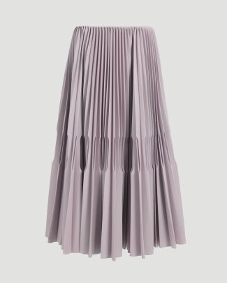 Pleated skirt by Alaïa, crafted from stretch wool gabardine. Designed with a tightened low waist and an ankle-length hem, it features a flared silhouette that moves elegantly with the body.