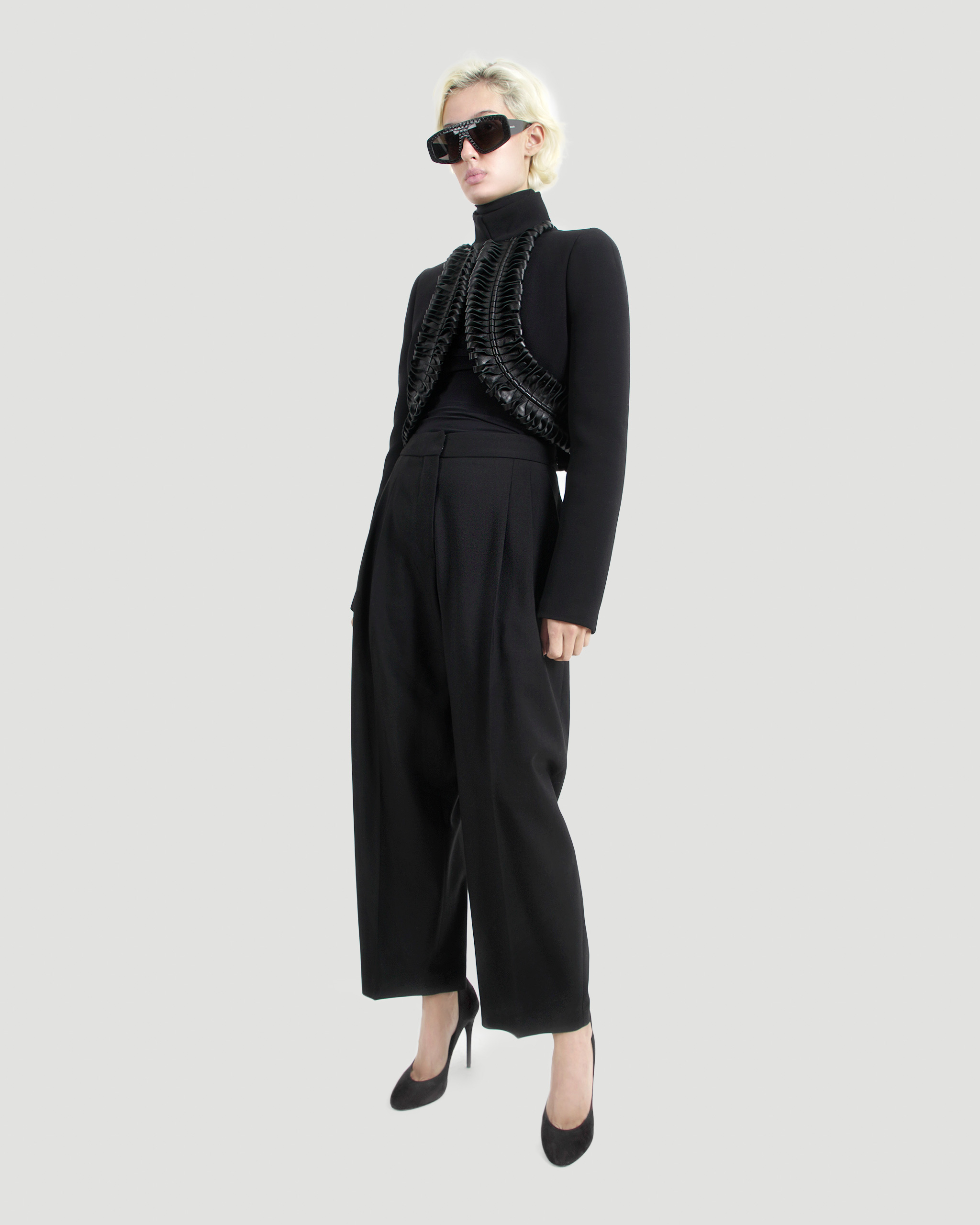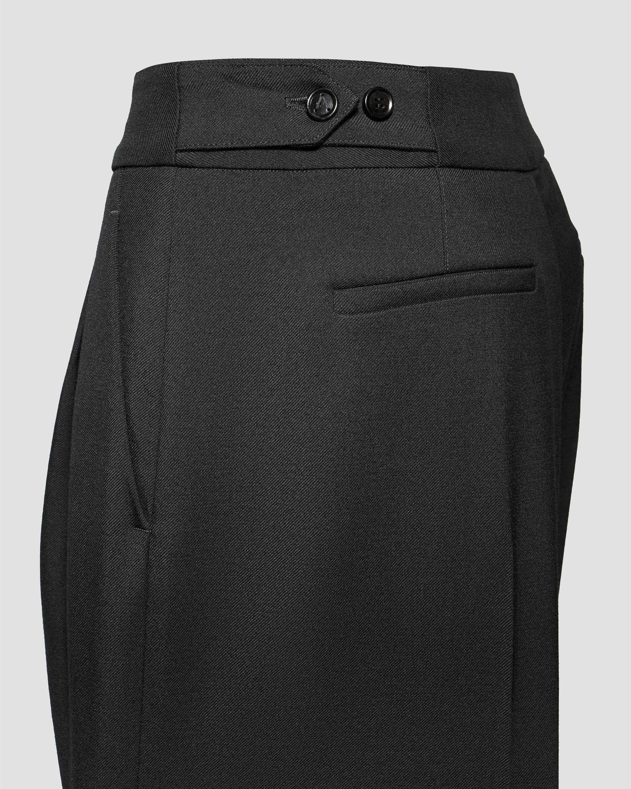 Tailored wool gabardine pants by Alaïa, designed with a low waist and adjustable side buttons. Cut to a tapered fit with an ankle-length silhouette for a refined, structured look.