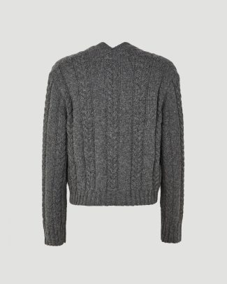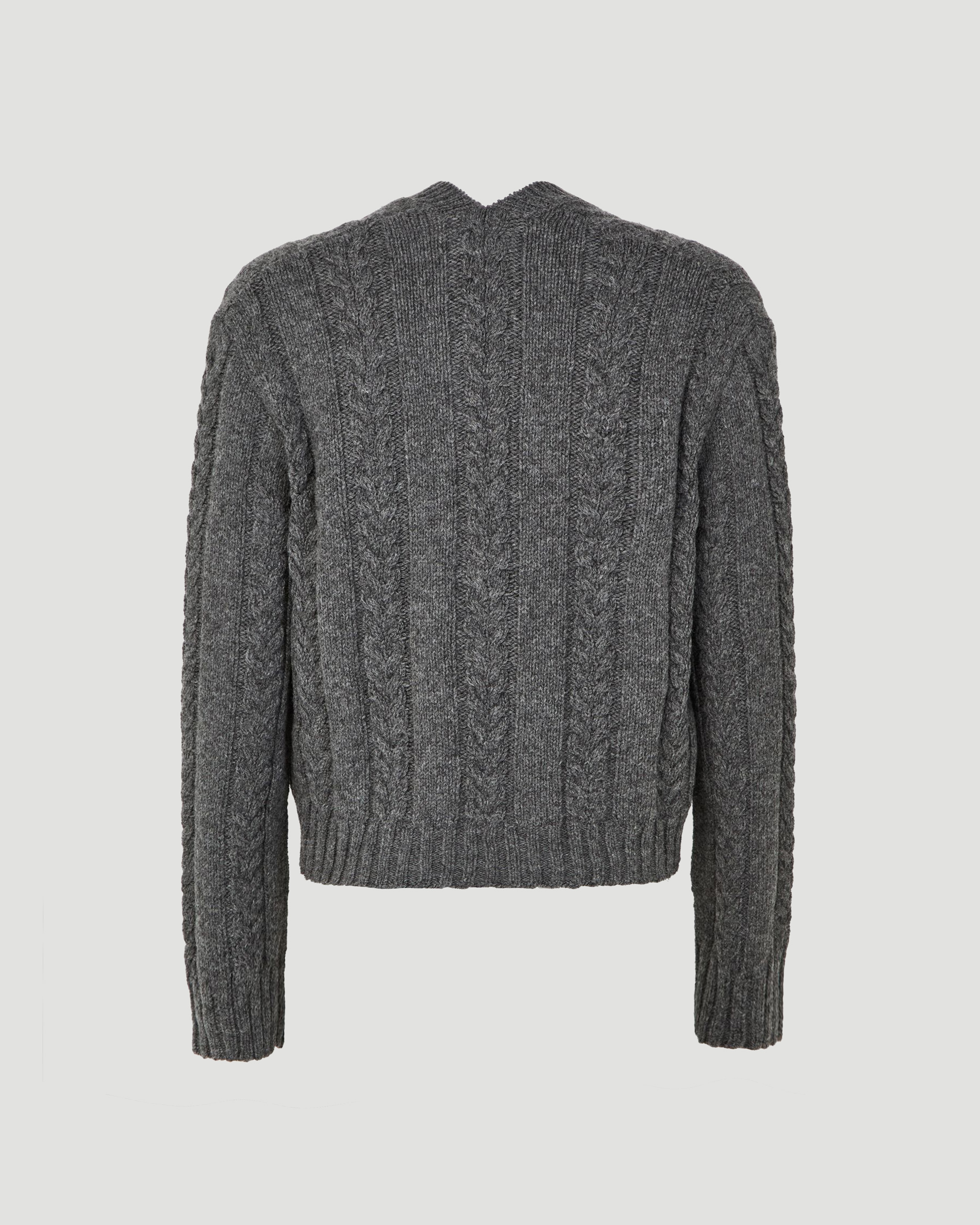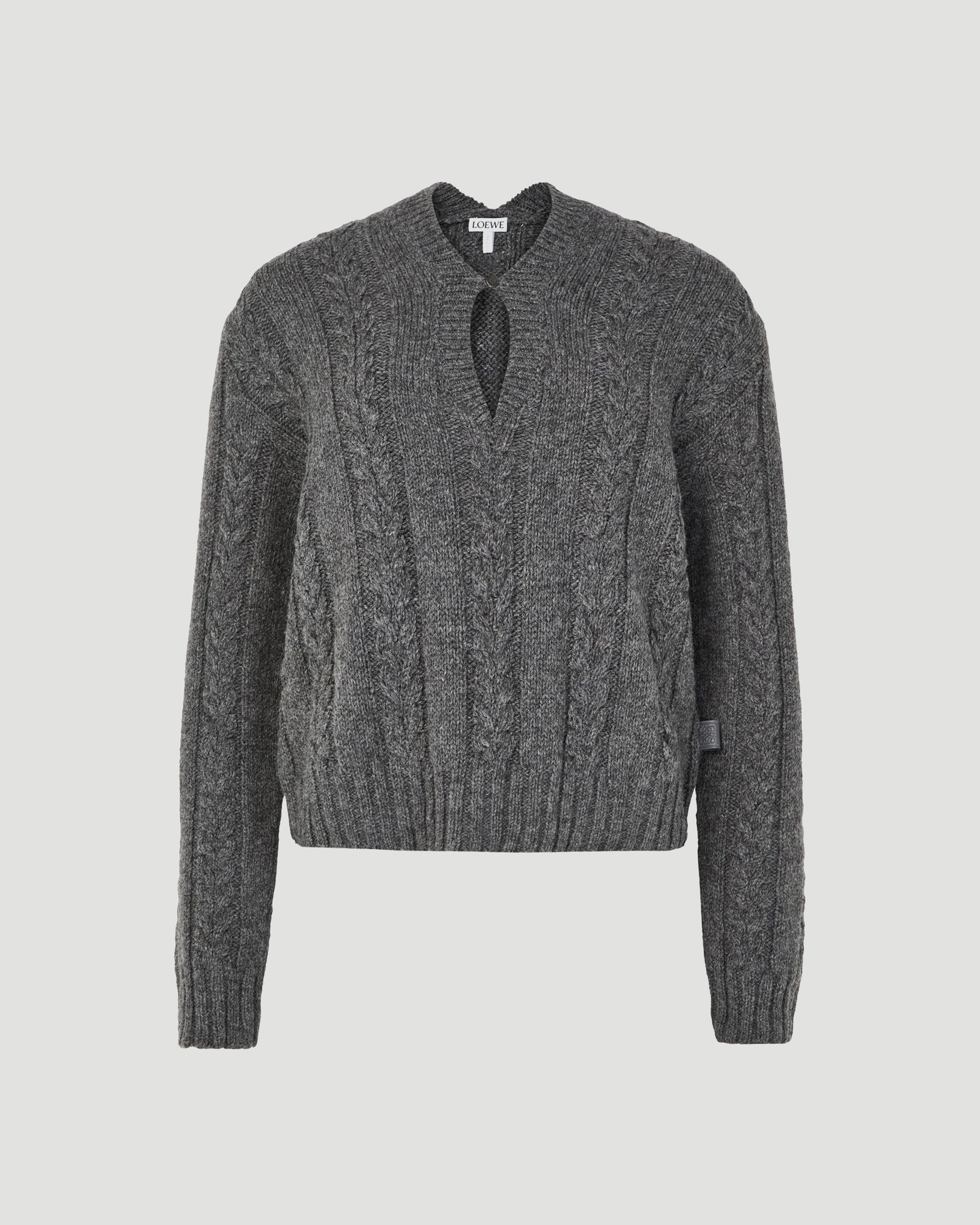 Medium-weight textured wool mouliné sweater by Loewe, featuring a V-neck with engraved Anagram fastening. Designed with ribbed collar, cuffs, and hem for structure and comfort, and finished with an Anagram leather tab at the side for a signature touch.