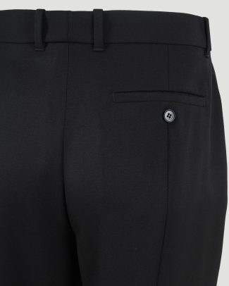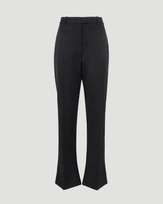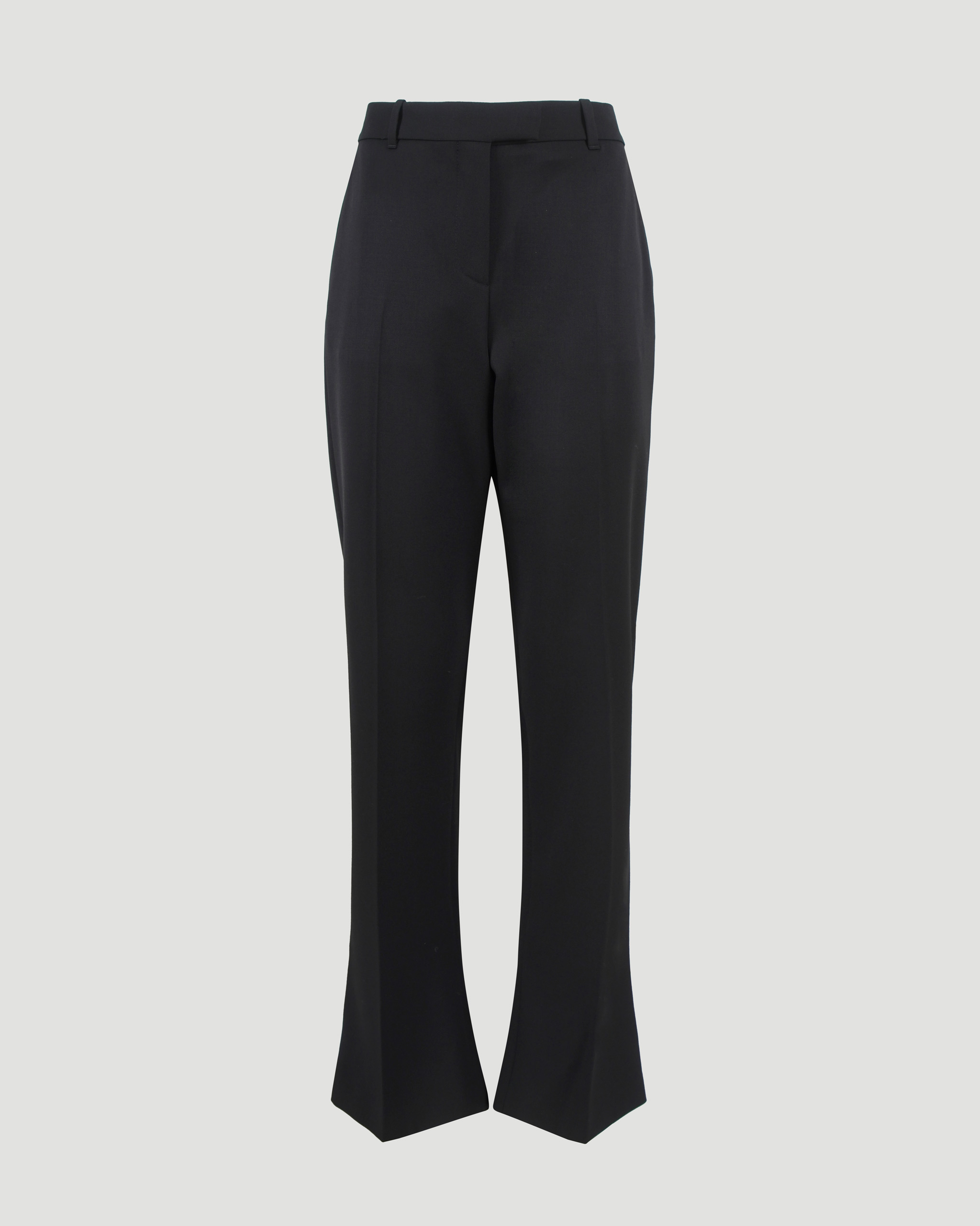 These wool trousers by Alexander McQueen feature a straight-leg cut with a zip fly and hook-and-bar closure. They are detailed with side pockets, a back pocket, and belt loops.