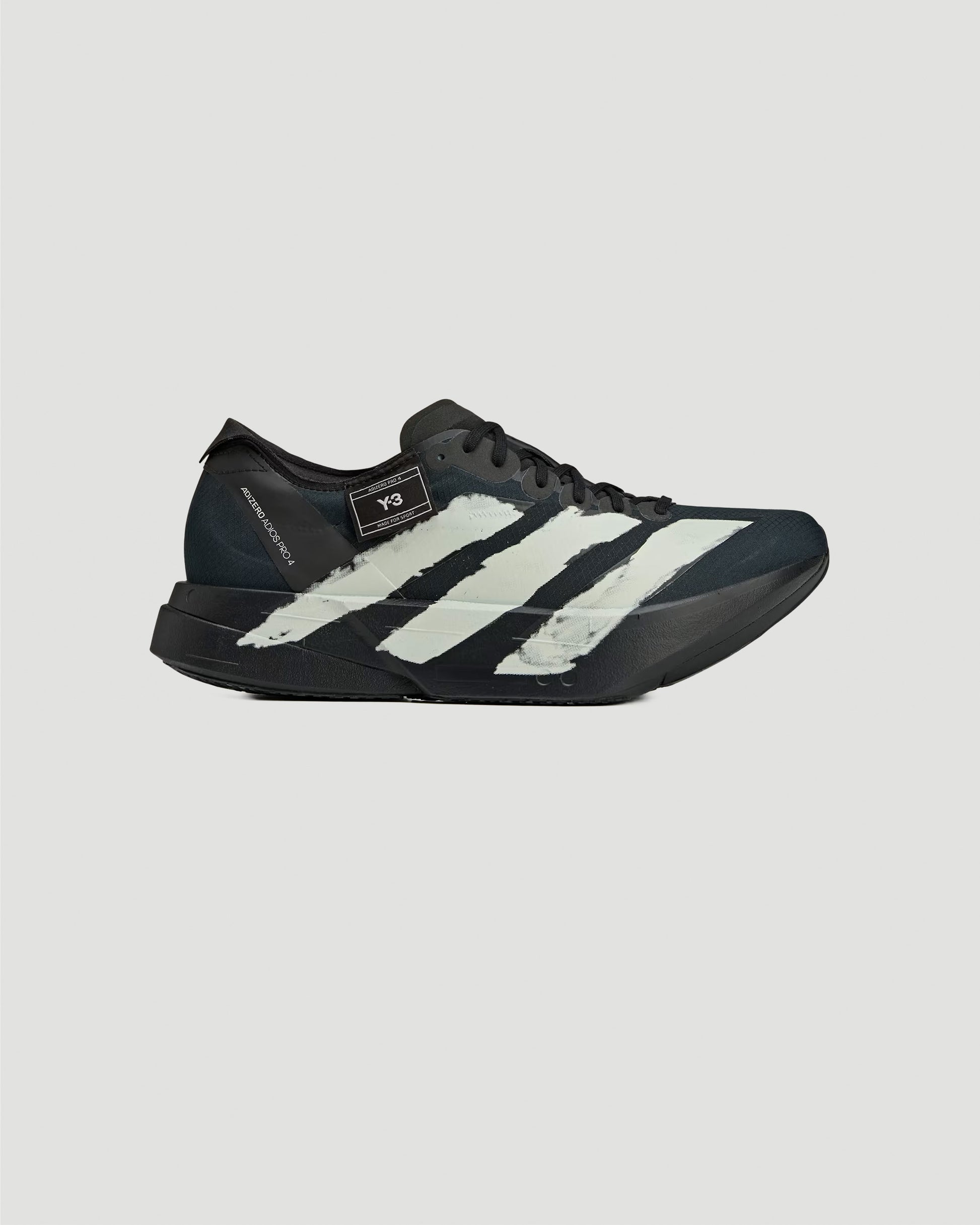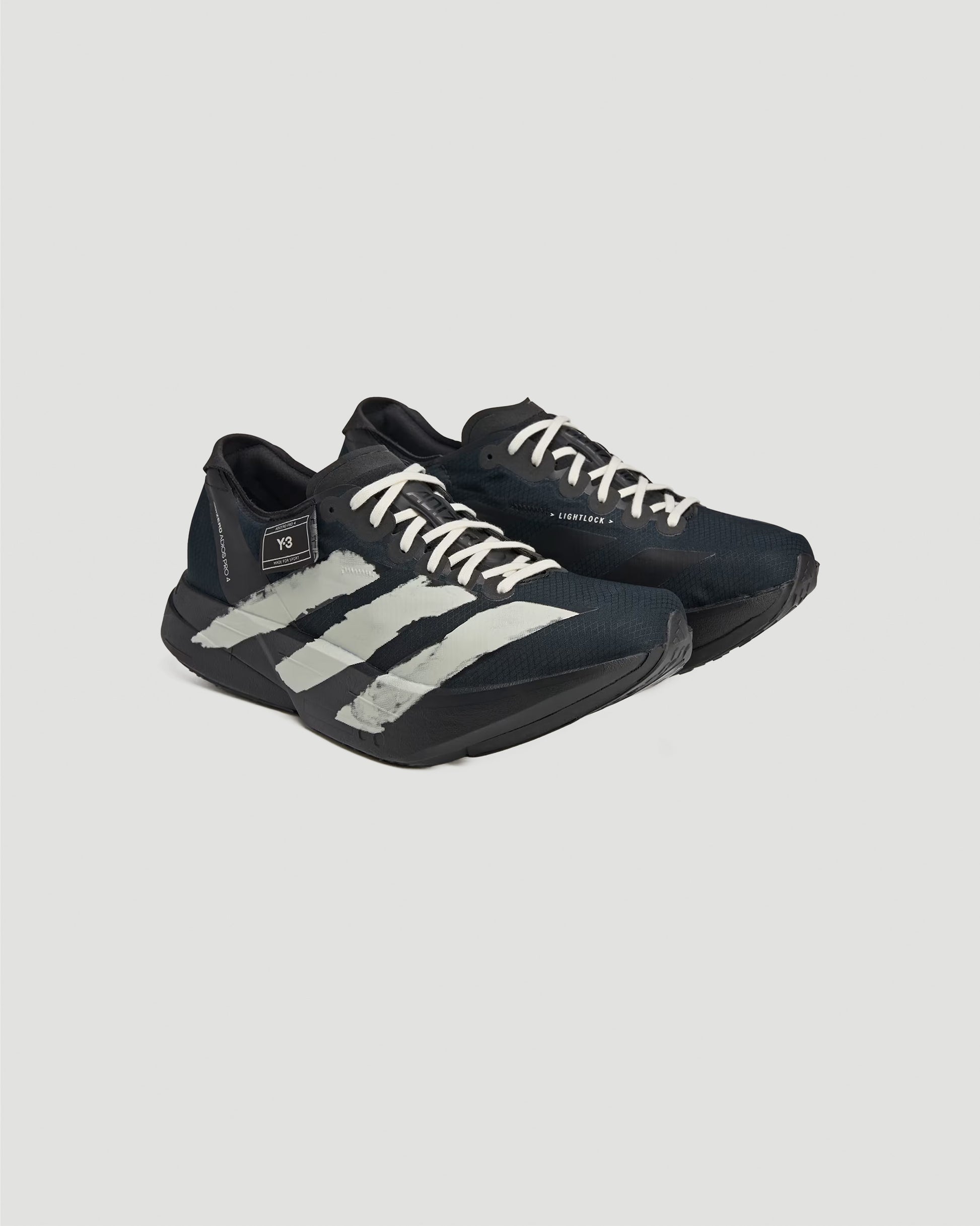 The Y-3 Adios Pro 4 running shoes combine cutting-edge performance tech with Y-3’s signature design language. Built with a stretch mesh upper, they feature a double-layered Lightstrike Pro midsole for ultra-lightweight cushioning and ENERGYRODS for optimal energy return, stability, and propulsion. The LIGHTTRAXION rubber outsole ensures reduced weight and superior grip. Finished with a Y-3 badge on one collar and Yohji Yamamoto’s signature on the other, they balance high-performance function with elevated style.