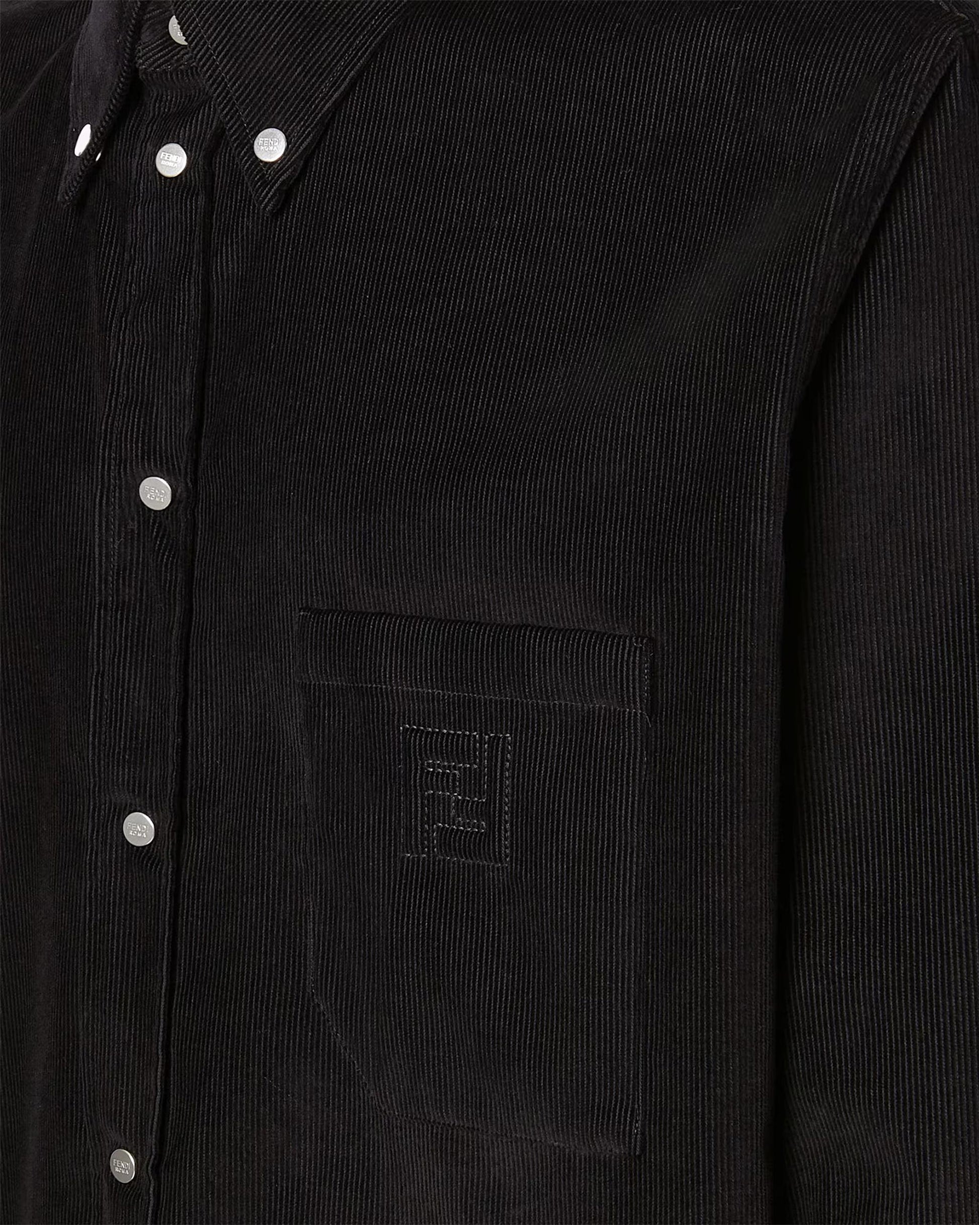 This comfort-fit shirt from Fendi is crafted in Italy from black cotton needlecord. It features a button-down collar, long sleeves, a chest patch pocket, and a visible button closure. The pocket is finished with an embossed, embroidered FF detail.