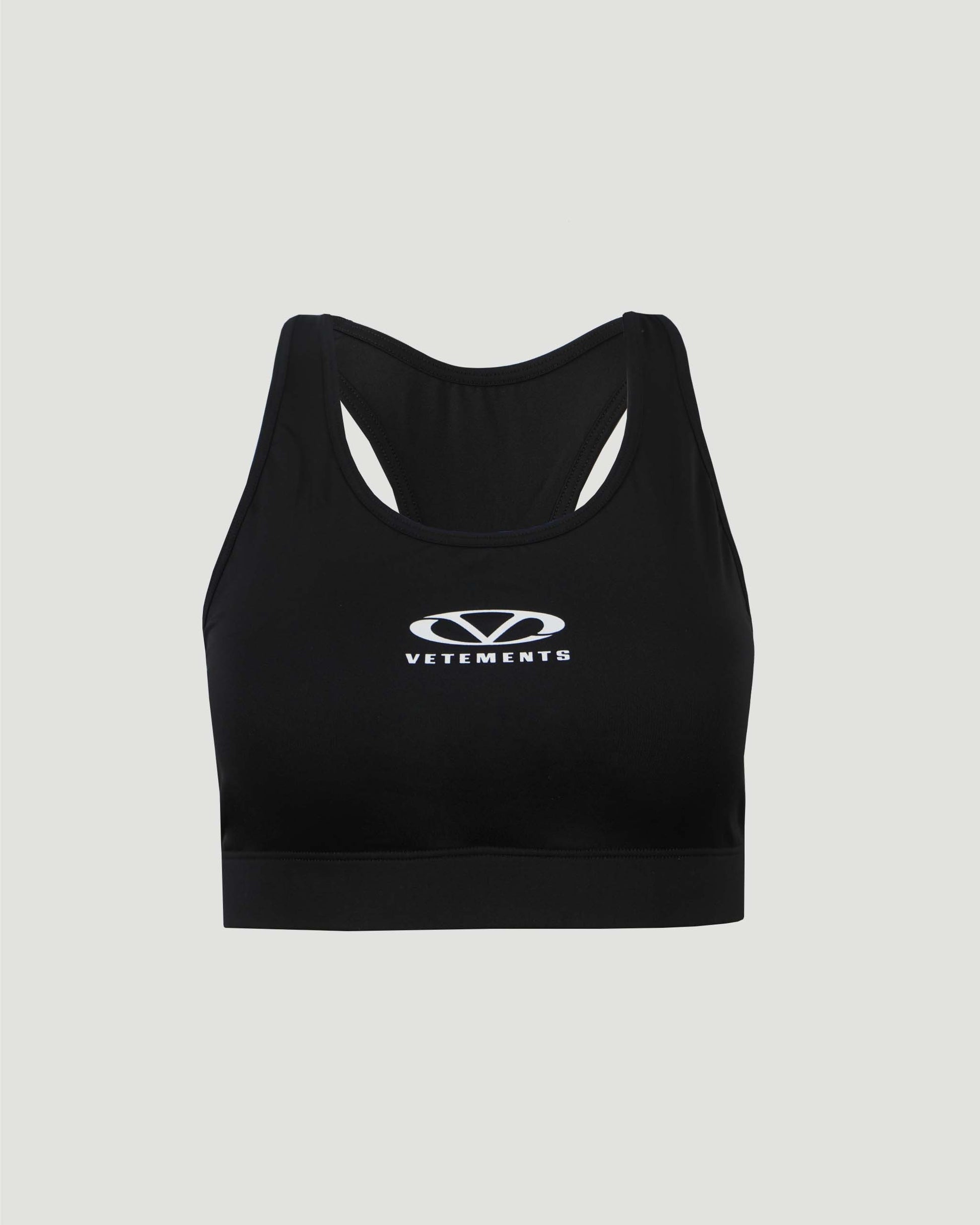 Introducing the Vetements sports top, crafted with a sleek, fitted design. This top ensures both comfort and style, featuring the house's rendition of their logo on the front.