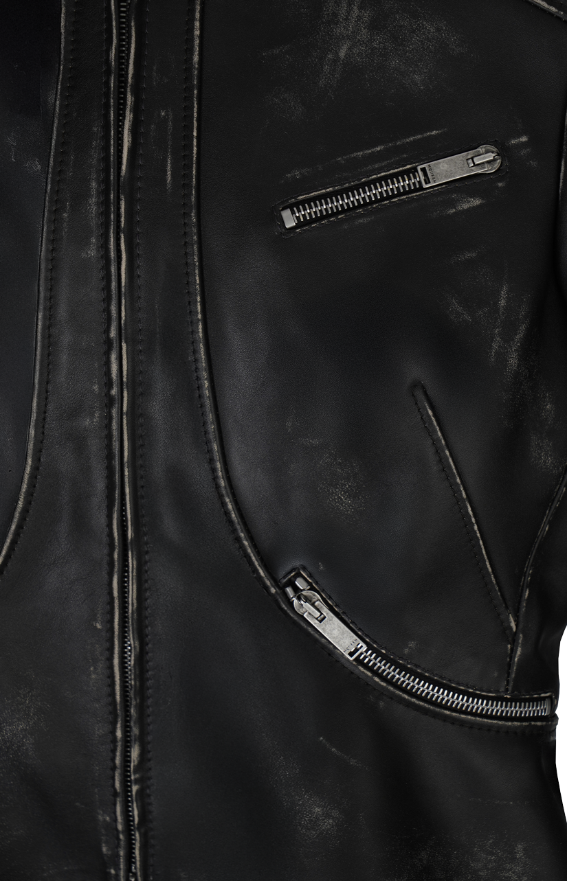 Brushed Leather Cropped Jacket in Black