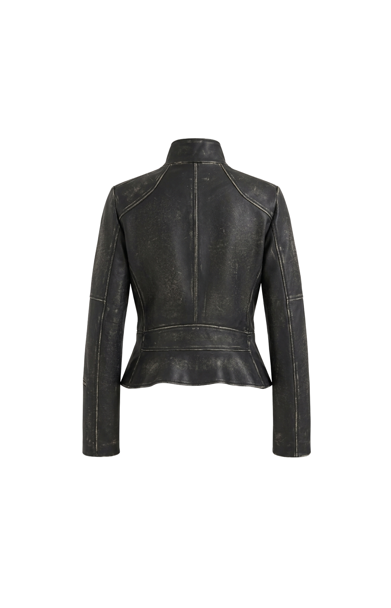 This cropped jacket by Alexander McQueen is crafted from calf leather. It features a high neck, three zip pockets, front zip fastening, a curved hem, and peplum detailing at the back.