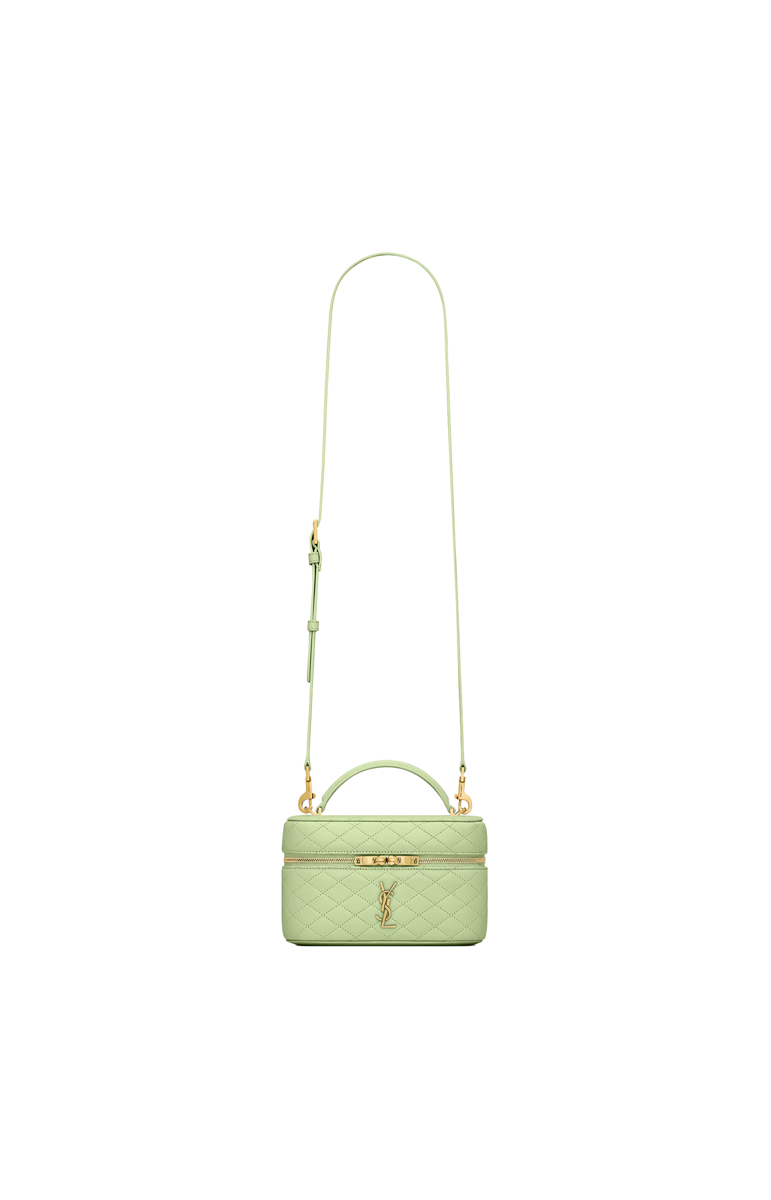 This color-block blouse by Saint Laurent is crafted from 100% silk. It features a high neck, front button closure, long sleeves with curled shoulders and one-button blunt cuffs, and a rounded hem. Made in Italy.