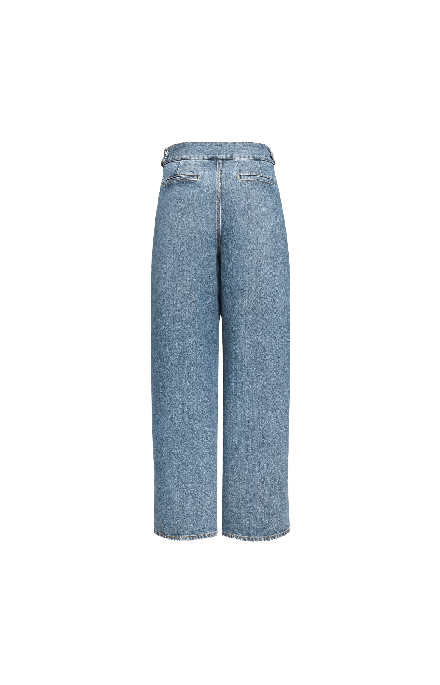 These pleated pants by Alaïa are crafted from vintage-effect washed denim. They feature a low waist, full leg, zipper closure, and a tapered fit.