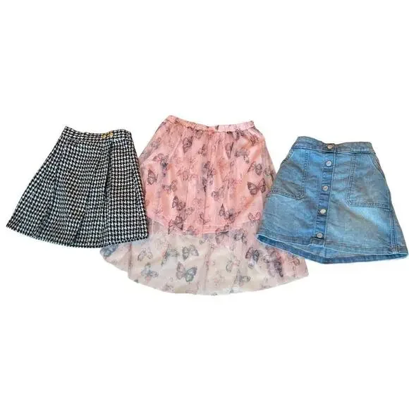 Girls back-to-school clothing Girls Size 10/12 • Girls Size LargeHanna Andersson;Dress size 150/ dress size 12• Yellow Short sleeve Dress with Pockets. Floral print -NewRomper Size 140/ Romper Size 10•White and pink, striped romper shorts & Sleeveless- worn, zero flawsGAP Denim;Both size Large•Long pants Overalls• Short overalls - worn, zero flawsJustice;Butterfly skirt size 12• High/Low Butterfly Skirt-NEWOld NavySize Large/ size 10-12• Denim skirt with front buttons Used, zero flaws HartstringsVINTAGE Skirt!! girls size 12 Black and white Houndstooth pleated skirtThis skirt is in perfect condition!Girls size 12 overallsShort overalls, beautiful pastel tie-die colorButtons on either side of the hips NEW