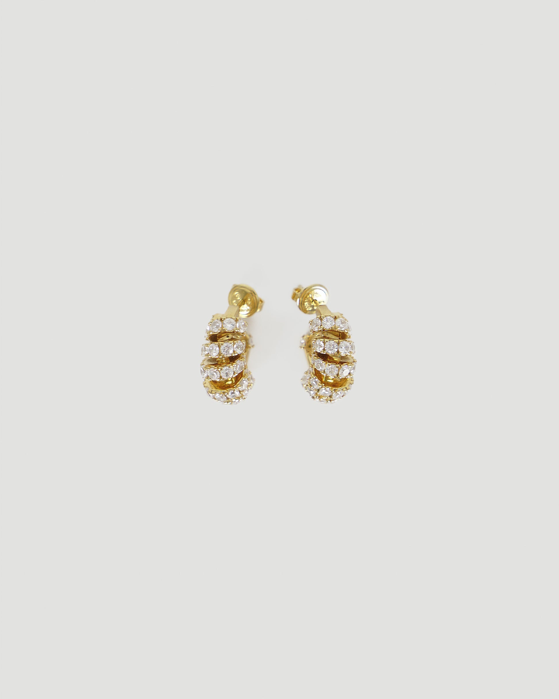 These earrings by Bottega Veneta are crafted from hand-polished 18k gold-finished sterling silver and set with cubic zirconia. They are secured with a pin butterfly closure for a refined, timeless finish.