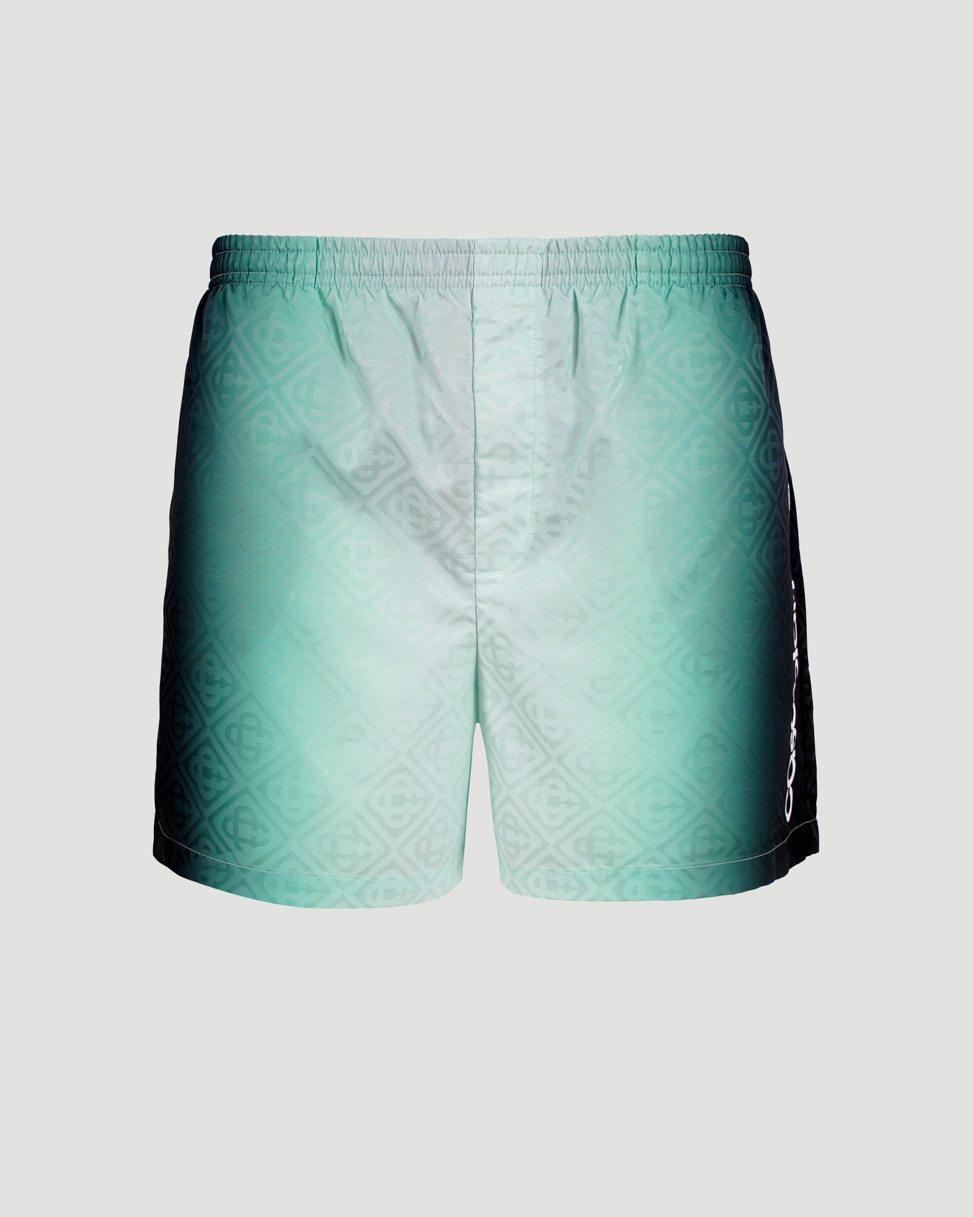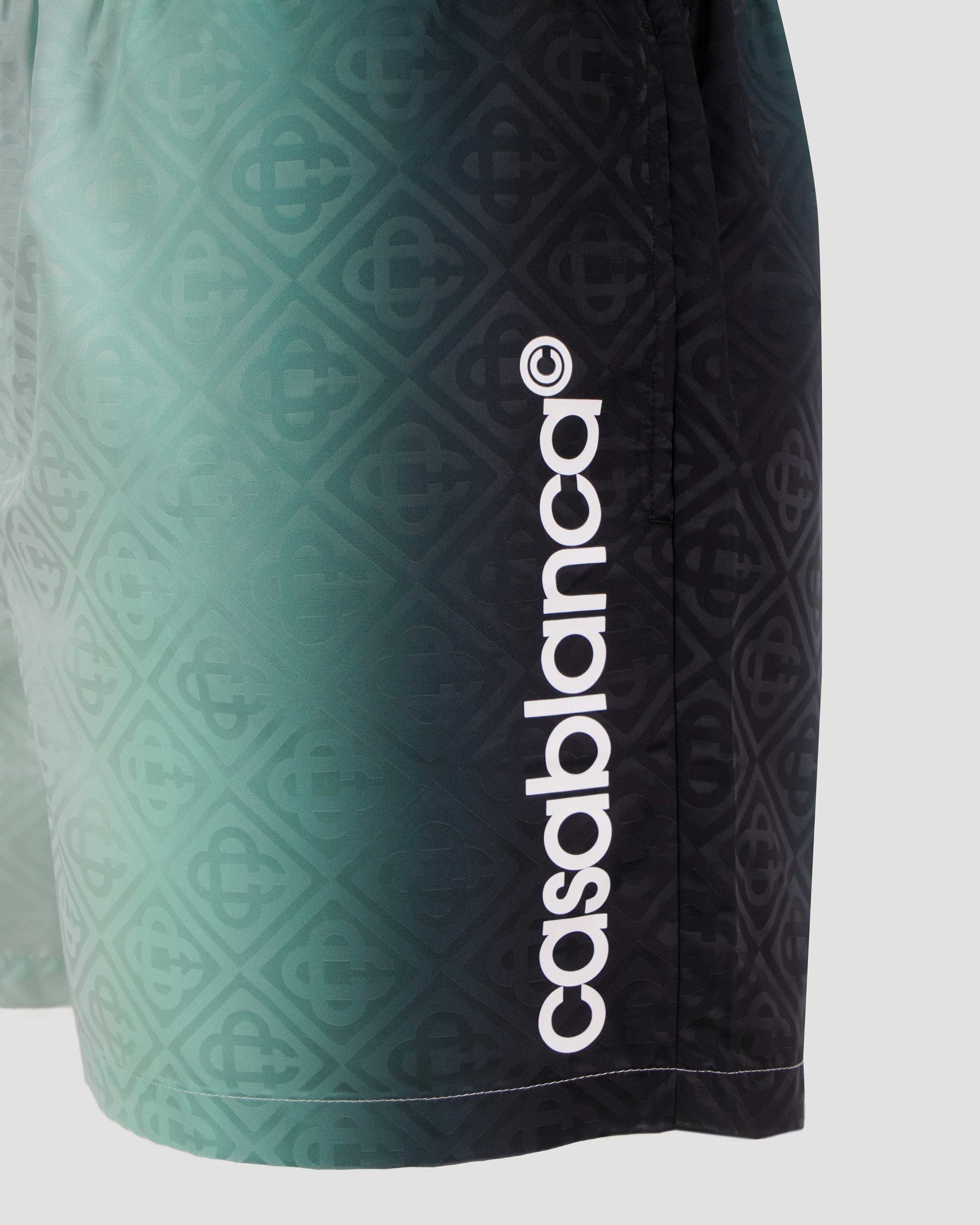 These classic swim shorts by Casablanca are crafted from gradient technical jacquard fabric and feature the house’s signature logo along the side. Designed for both style and performance, they include an elasticated waistband with internal drawstring, mesh lining, an internal pocket, and in-seam side pockets.