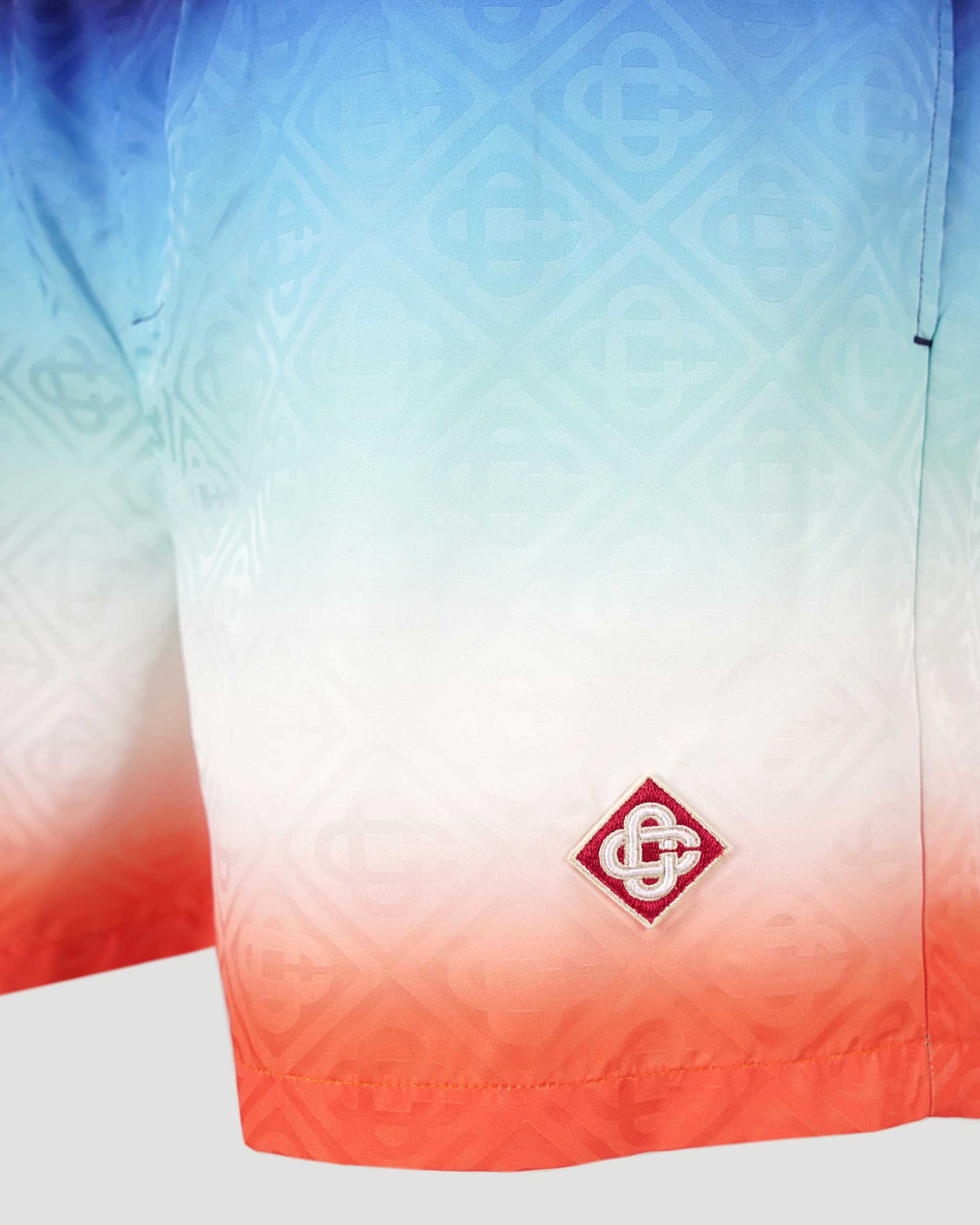 These swim shorts from Casablanca are crafted from lightweight polyester fabric featuring a seasonal monogram motif on top of a gradient background. Completed with an elasticated waistband, an internal drawstring fastening, in-seam side pockets, a stretch mesh lining, an internal pocket, and a signature diamond silicon patch logo.