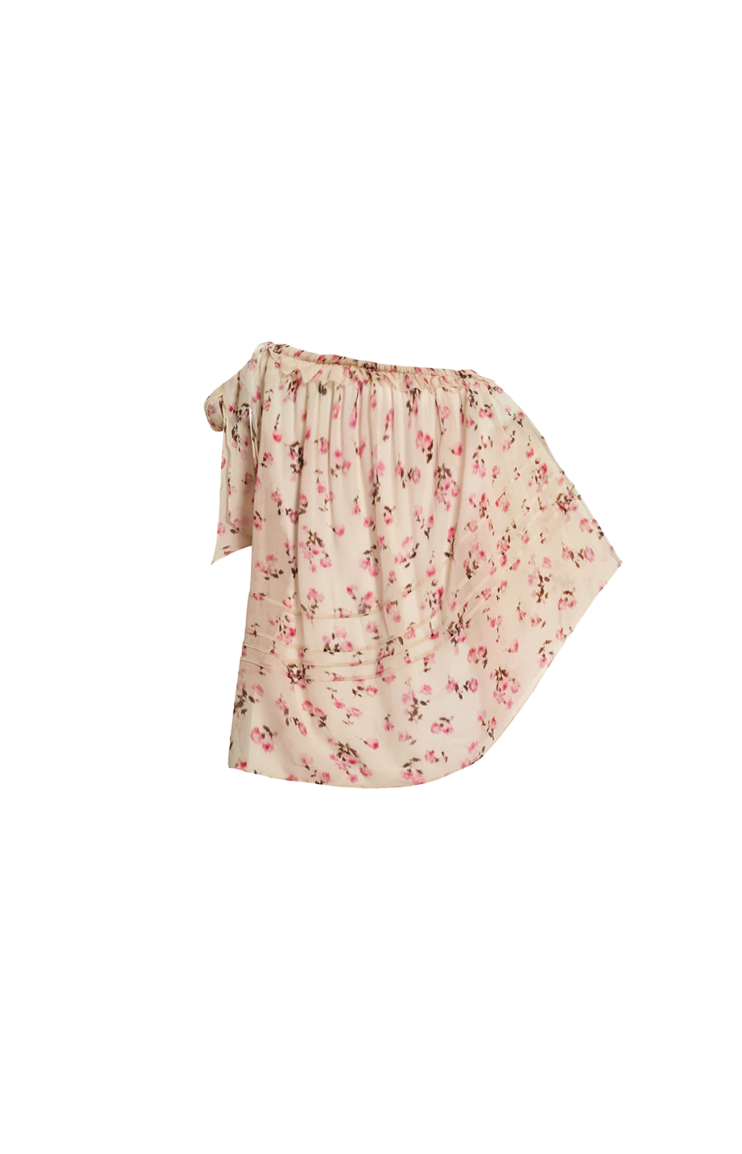 This asymmetrical top by Isabel Marant is crafted from sheer printed muslin. It features a gathered asymmetrical shoulder with string tie and frill detailing. A flared cut and asymmetrical hem complete the design.