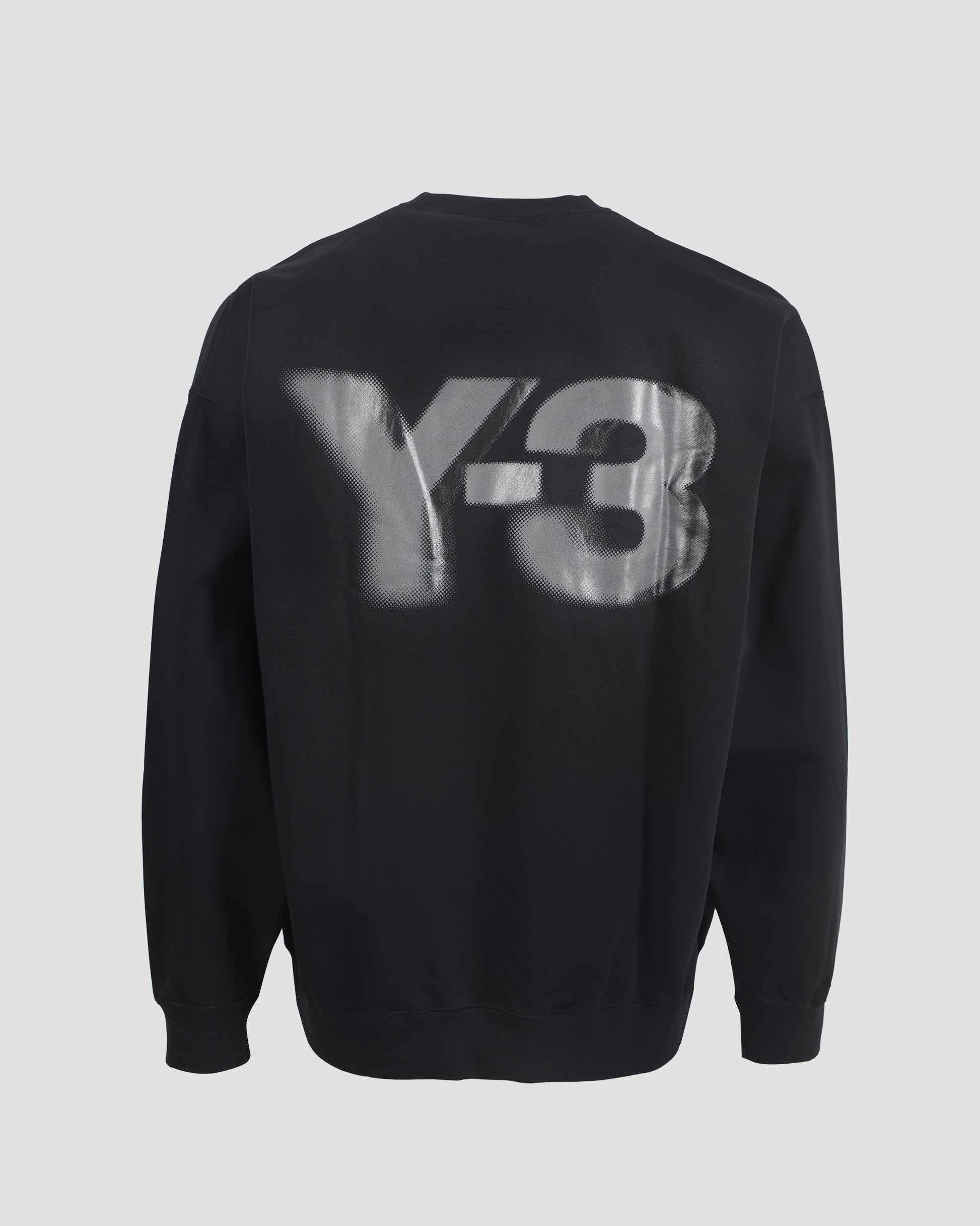 Discover the crew sweatshirt from Y-3, a perfect blend of style and comfort. This black sweatshirt features a distinctive distorted logo with reflective coloring. Designed with a loose fit, it offers a relaxed silhouette, complemented by a classic crewneck and long sleeves.