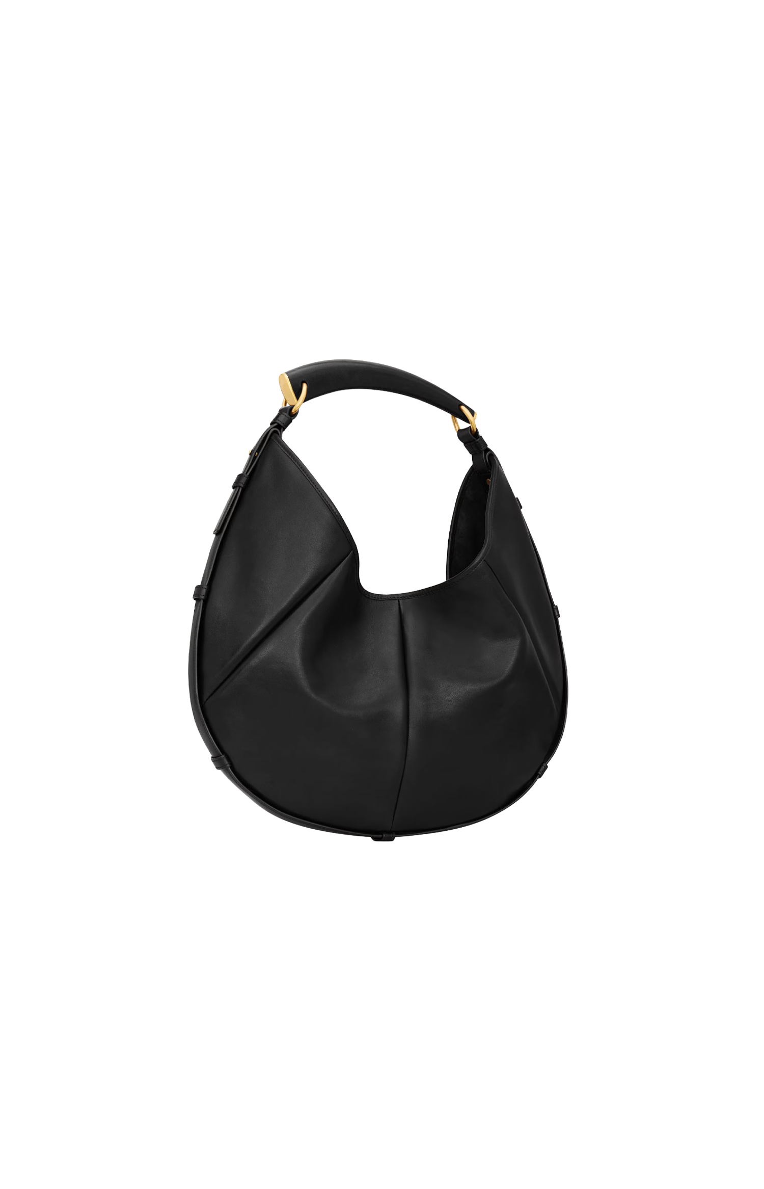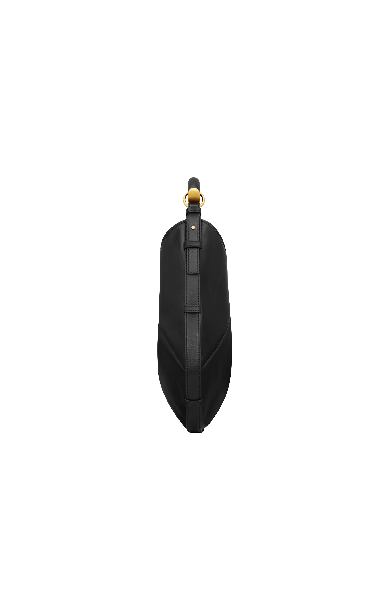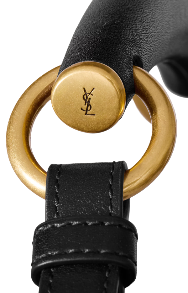 This Mombasa hobo bag by Saint Laurent is crafted from padded calfskin with suede lining. It features a leather-covered handle for shoulder carry, magnetic snap closure, bronze-tone hardware, and an internal zip pocket.