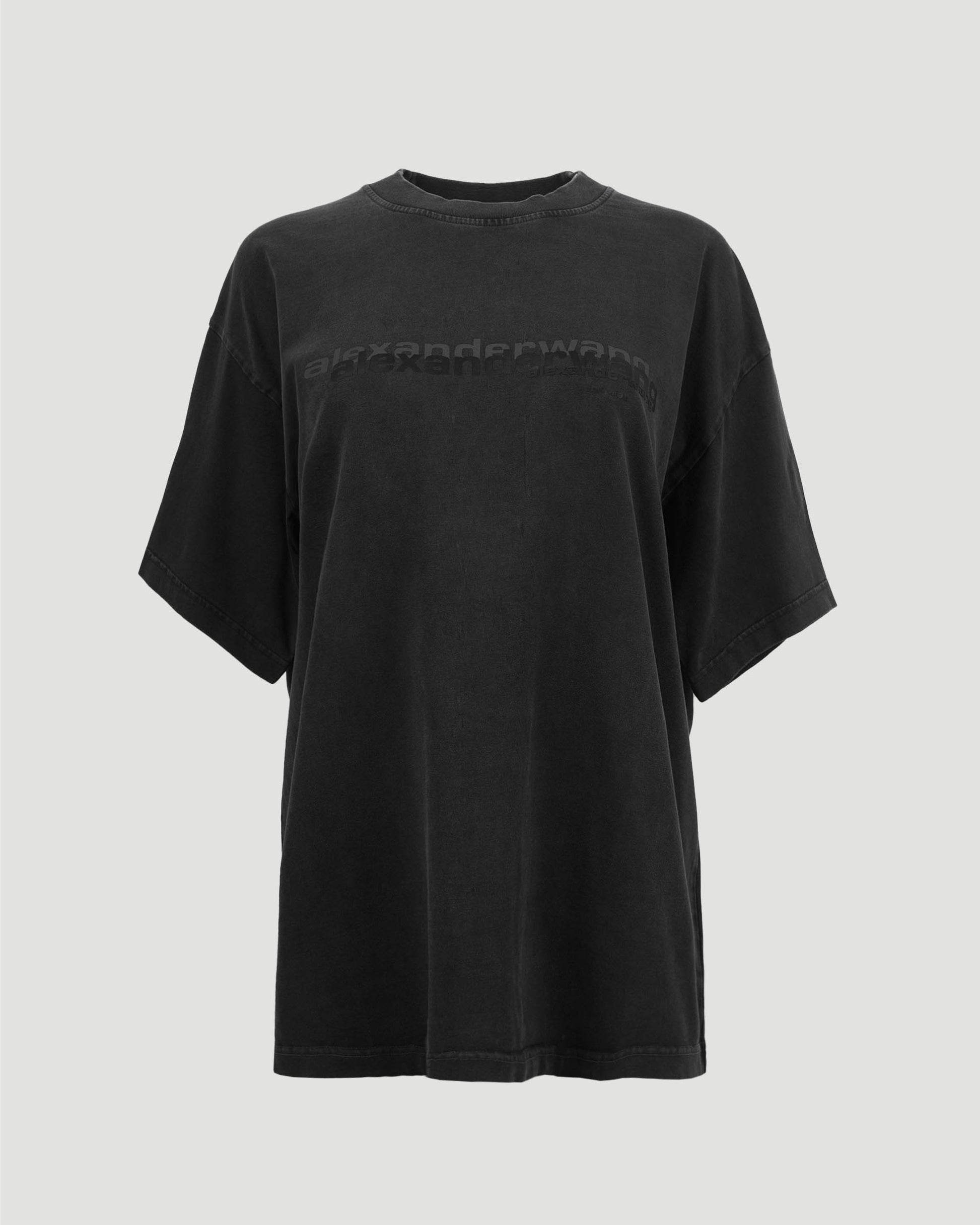 Oversized T-shirt by Alexander Wang, crafted from a cotton blend in washed black. Features an oversized boxy fit, chunky ribbed crewneck, and short sleeves — a minimalist staple with a structured, street-ready silhouette.