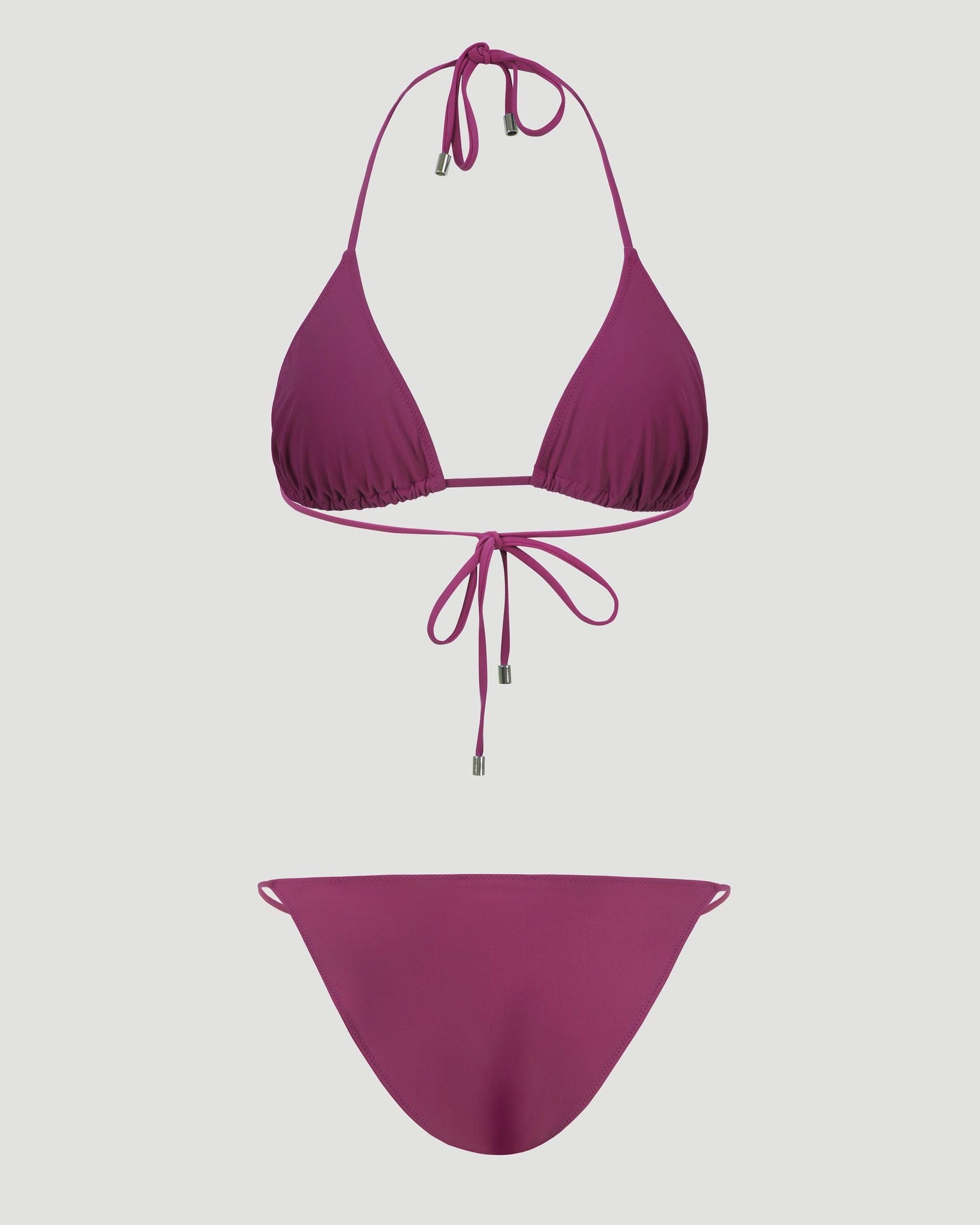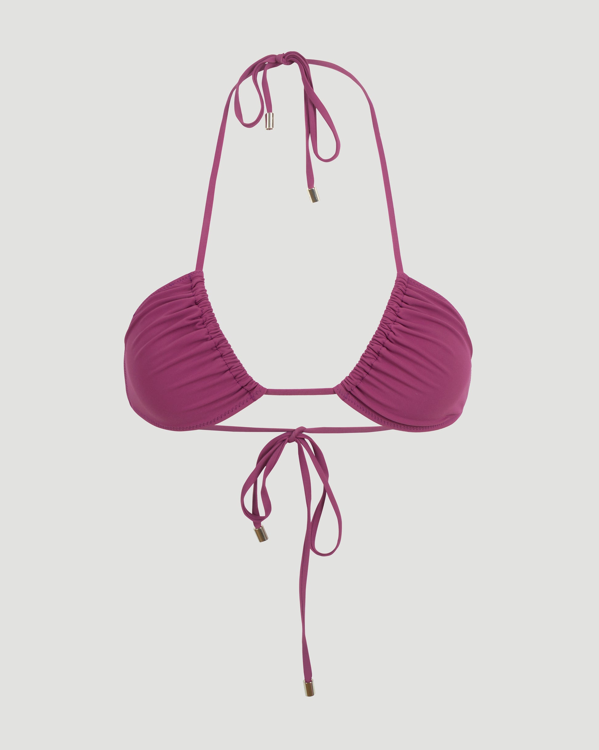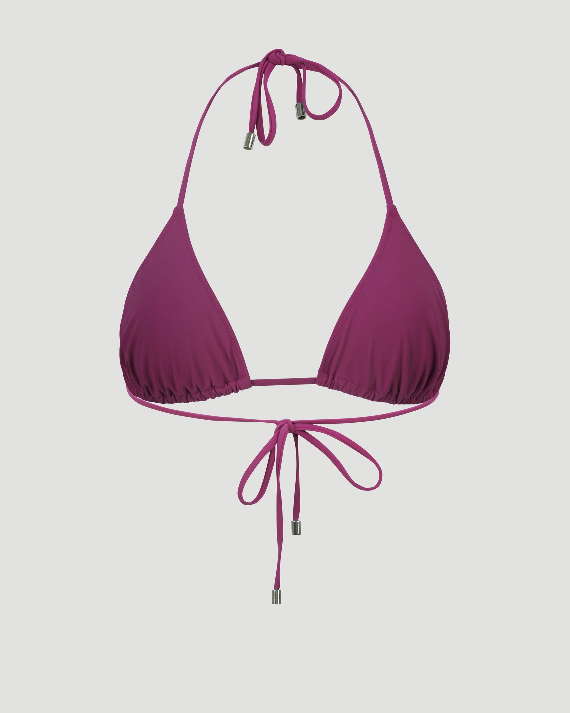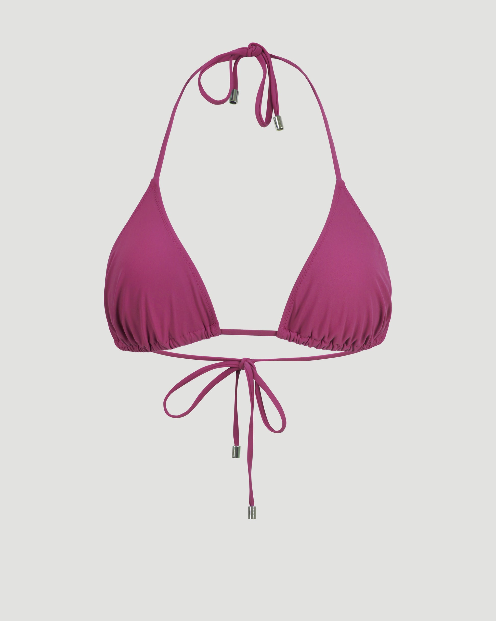 The Selis bikini top is crafted from soft, stretchy fabric for a comfortable and flexible fit. Designed in a timeless triangle silhouette, it offers a flattering shape. Featuring adjustable side ties. Complete the look by styling it with the coordinating bottoms for a chic, beach-ready ensemble.