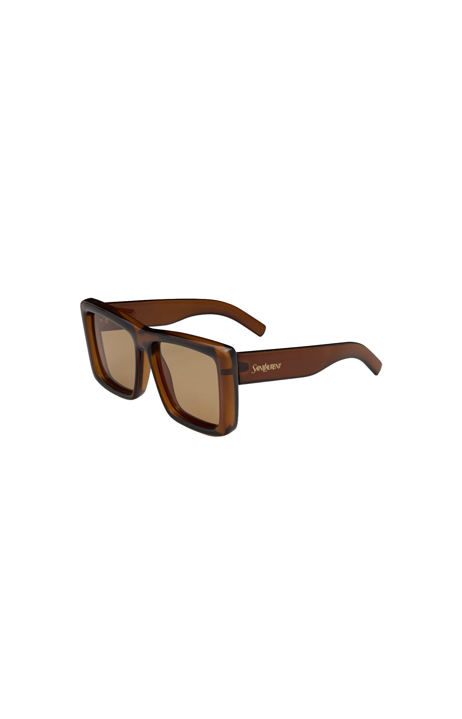 These aviator sunglasses by Saint Laurent are crafted from translucent acetate with a metal bridge and nylon lenses. They feature engraved temples, metal hinge details, 100% UVA/UVB protection, and frames compatible with prescription lenses.
