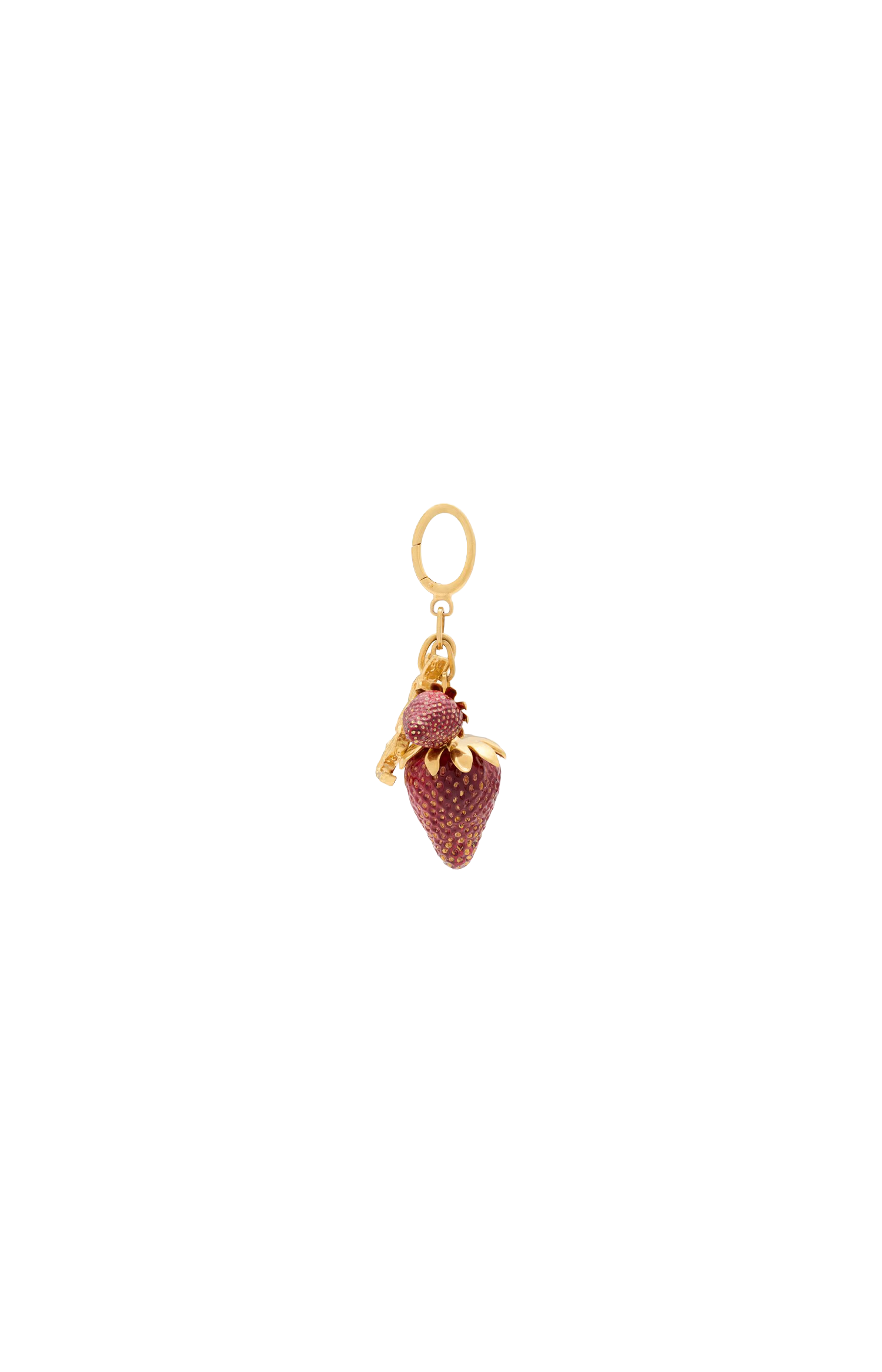 Saint Laurent strawberry charm with the Cassandre. features a spring gate ring closure and saint laurent engraving.
