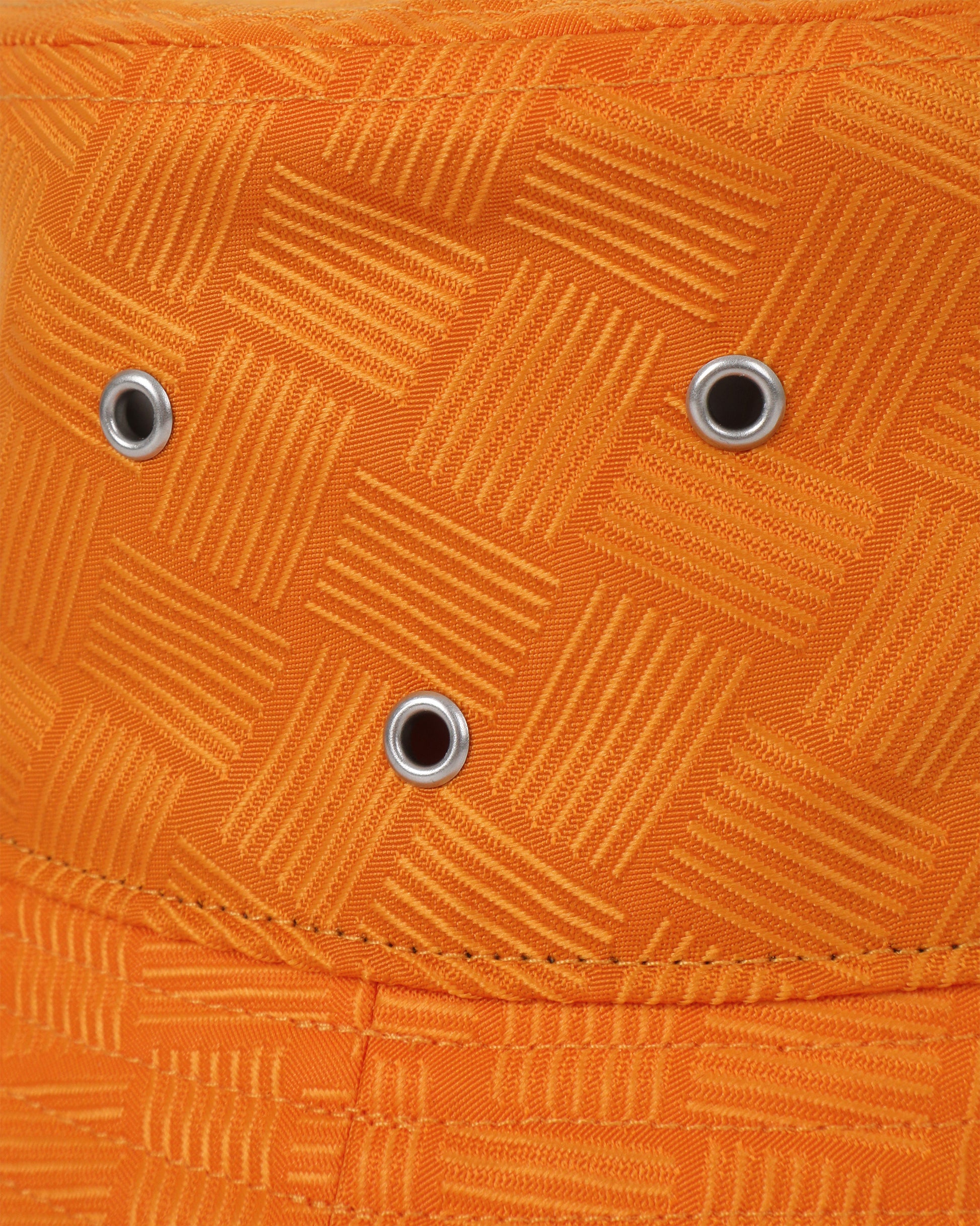 Add a pinch of color to your summer looks with Bottega Veneta. This bucket hat is made from nylon-blend canvas in orange featuring tonal jacquard-woven intreccio pattern. Eyelet vents in silver-tone at face.