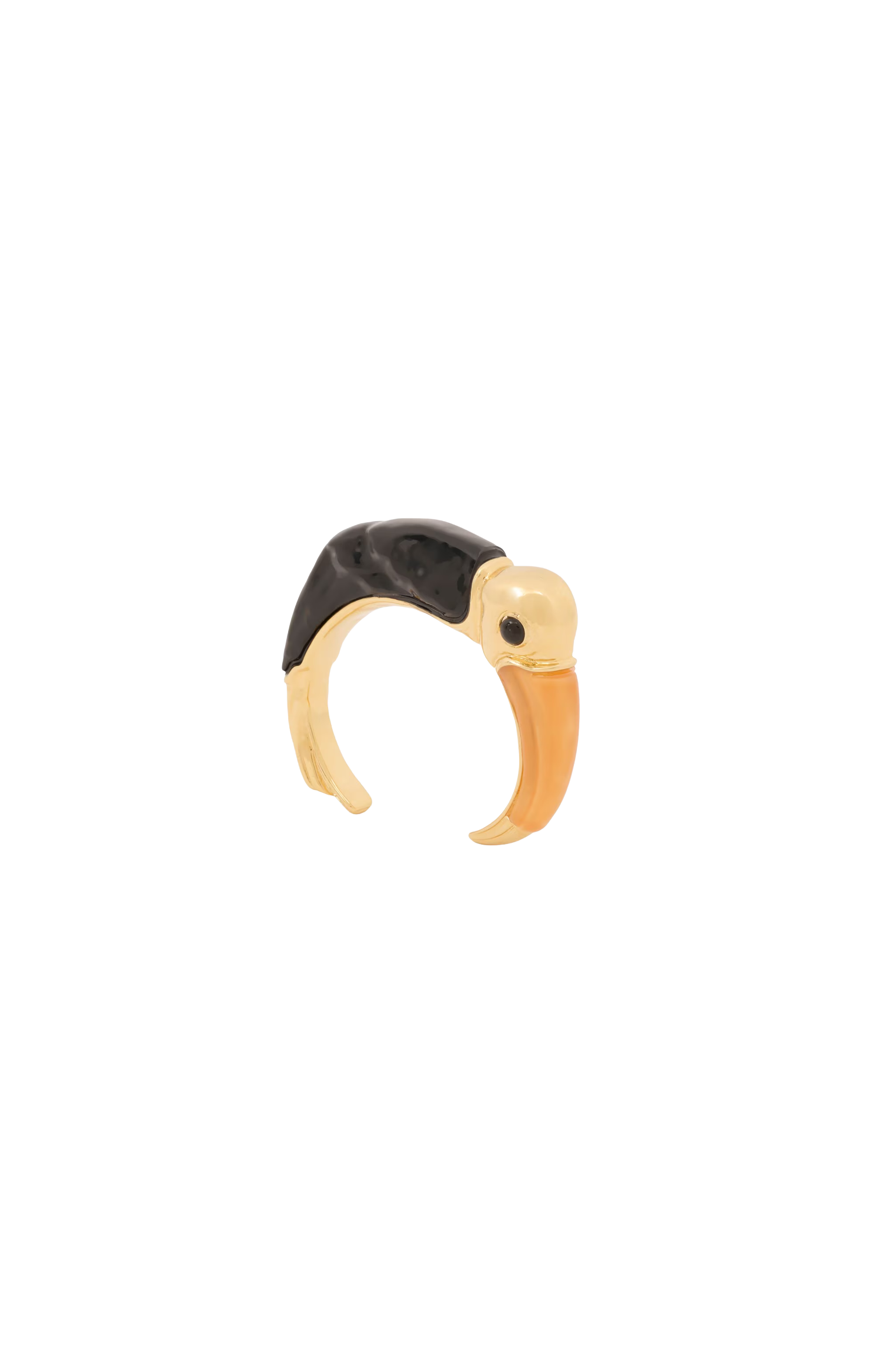 This cuff by Chloé is crafted in gold-tone brass with black and orange resin in a toucan shape. It features an engraved Chloé logo.