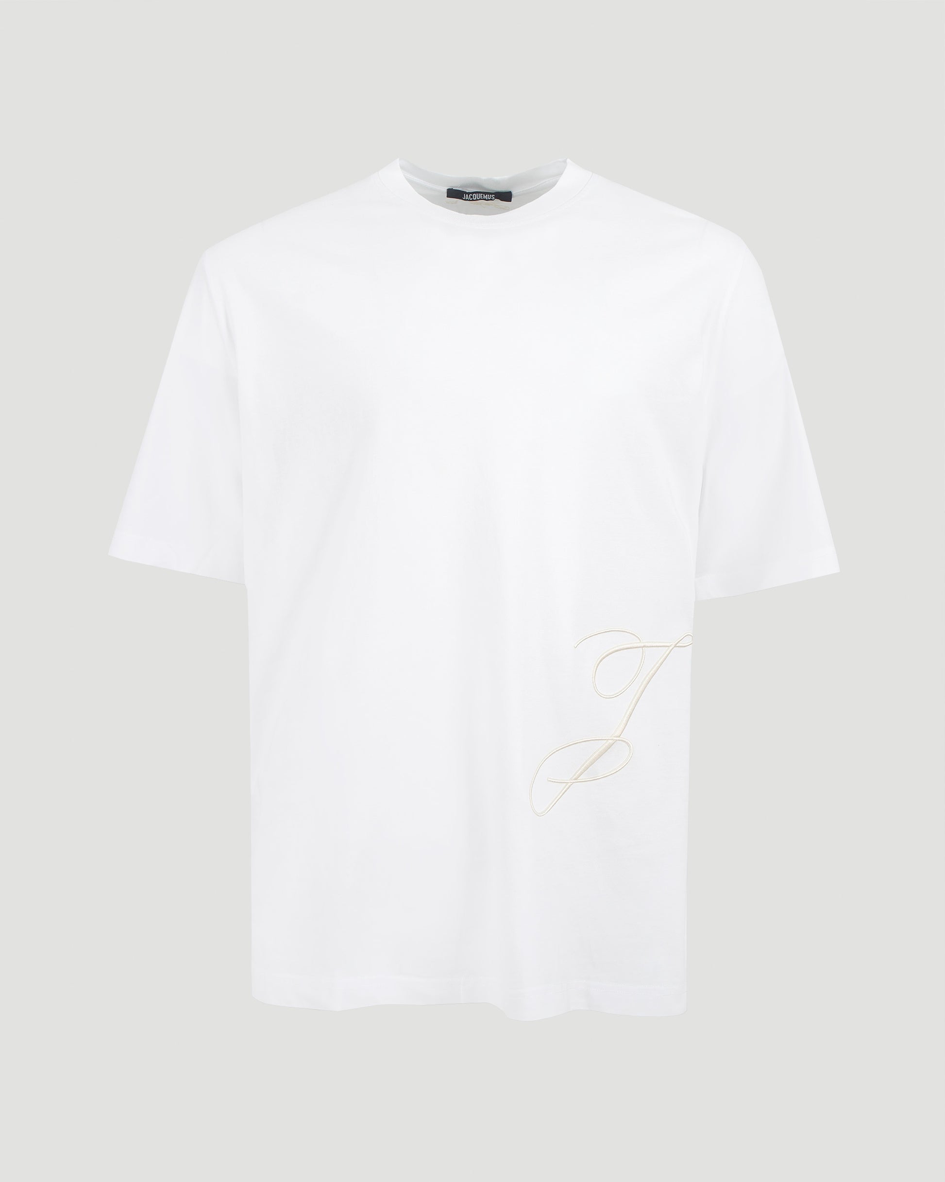 This short-sleeved Jacquemus T-shirt is cut in a relaxed fit from soft cotton jersey. It features a ribbed crew neck, a tonal embroidered “J” logo at the front, and the signature logo subtly stitched below the back neckline.