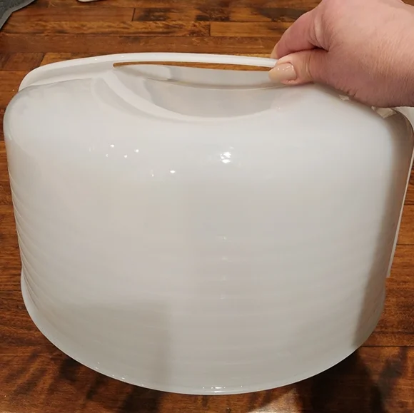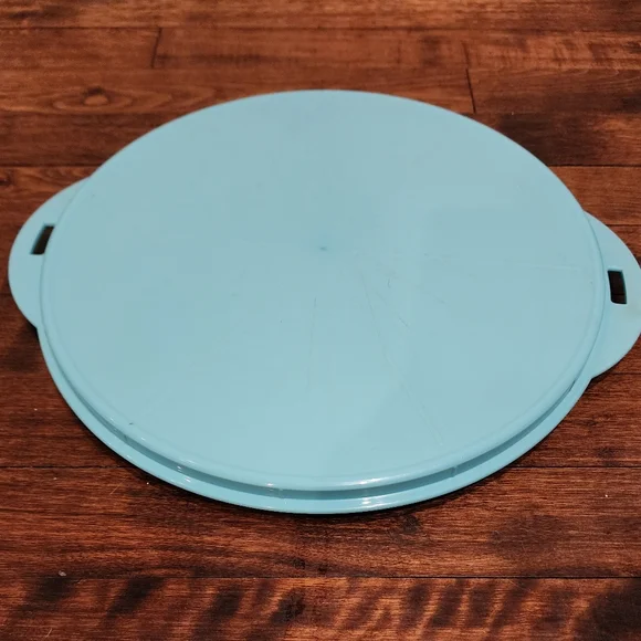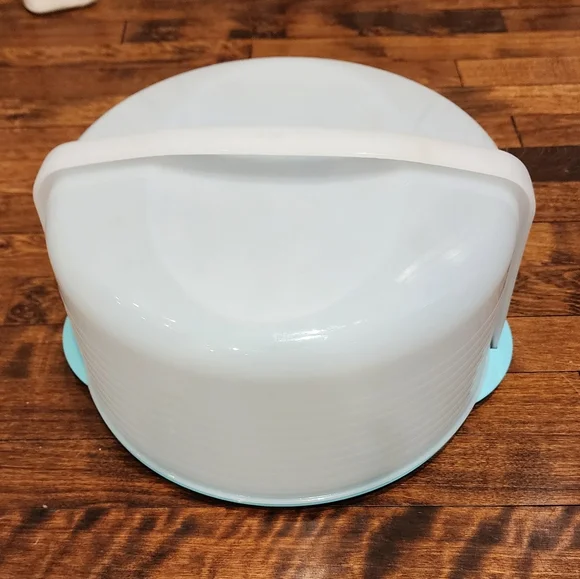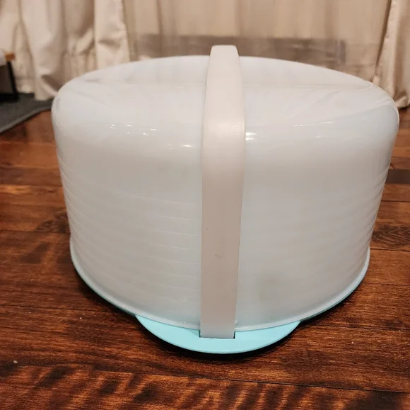 I'm selling a Tupperware round cake taker/carrier. Used 2x at best. It holds the tallest layer cake or 12 cupcakes. The dome cover locks at the sides for safe fridge storage and transporting.It measures: 12" diameter and 8" high, including handle.It's in excellent condition with no odors or flaws.Comes from a smoke-free home.Thank you for looking.