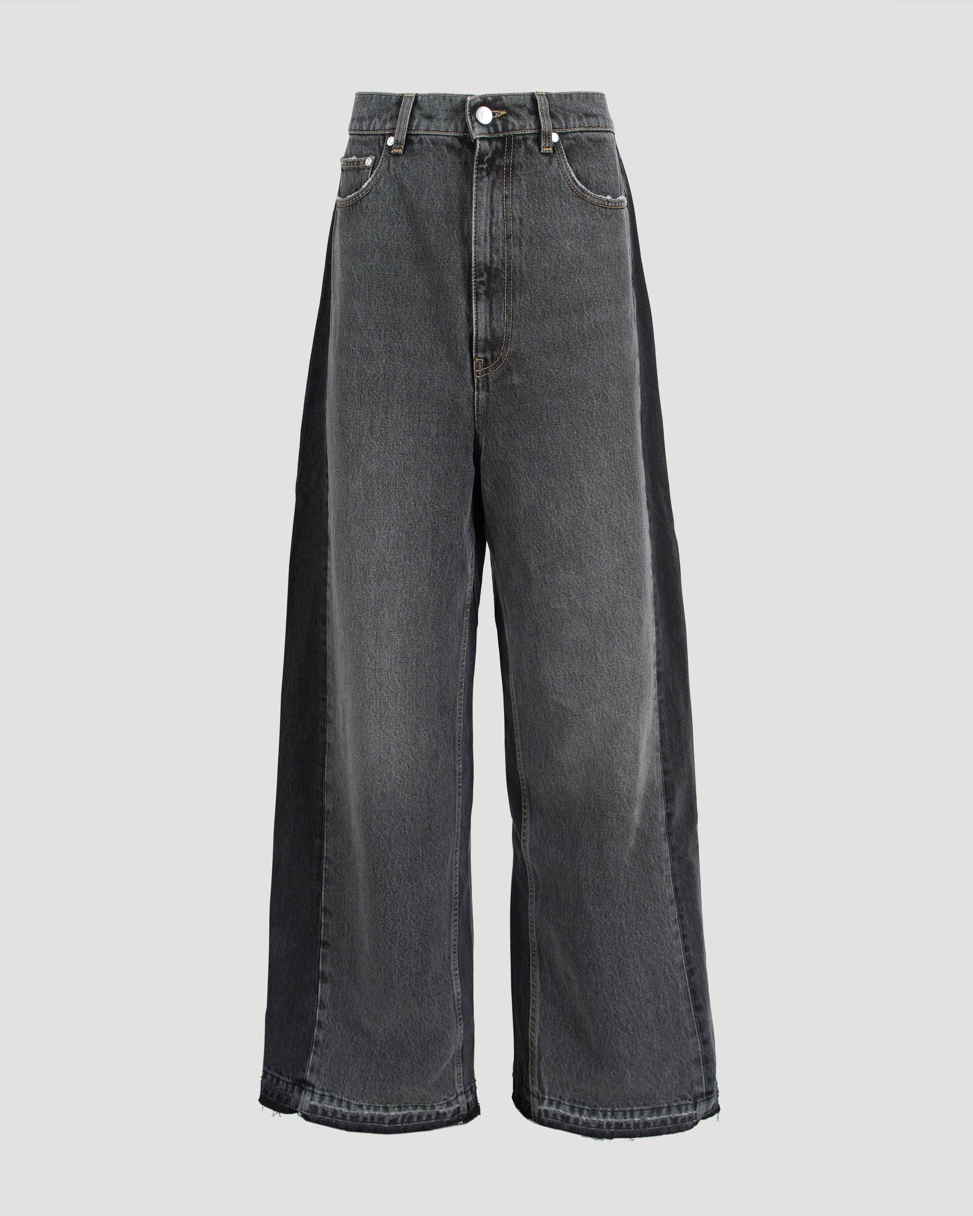 Two-Tone Black Wide-Leg Denim Jeans