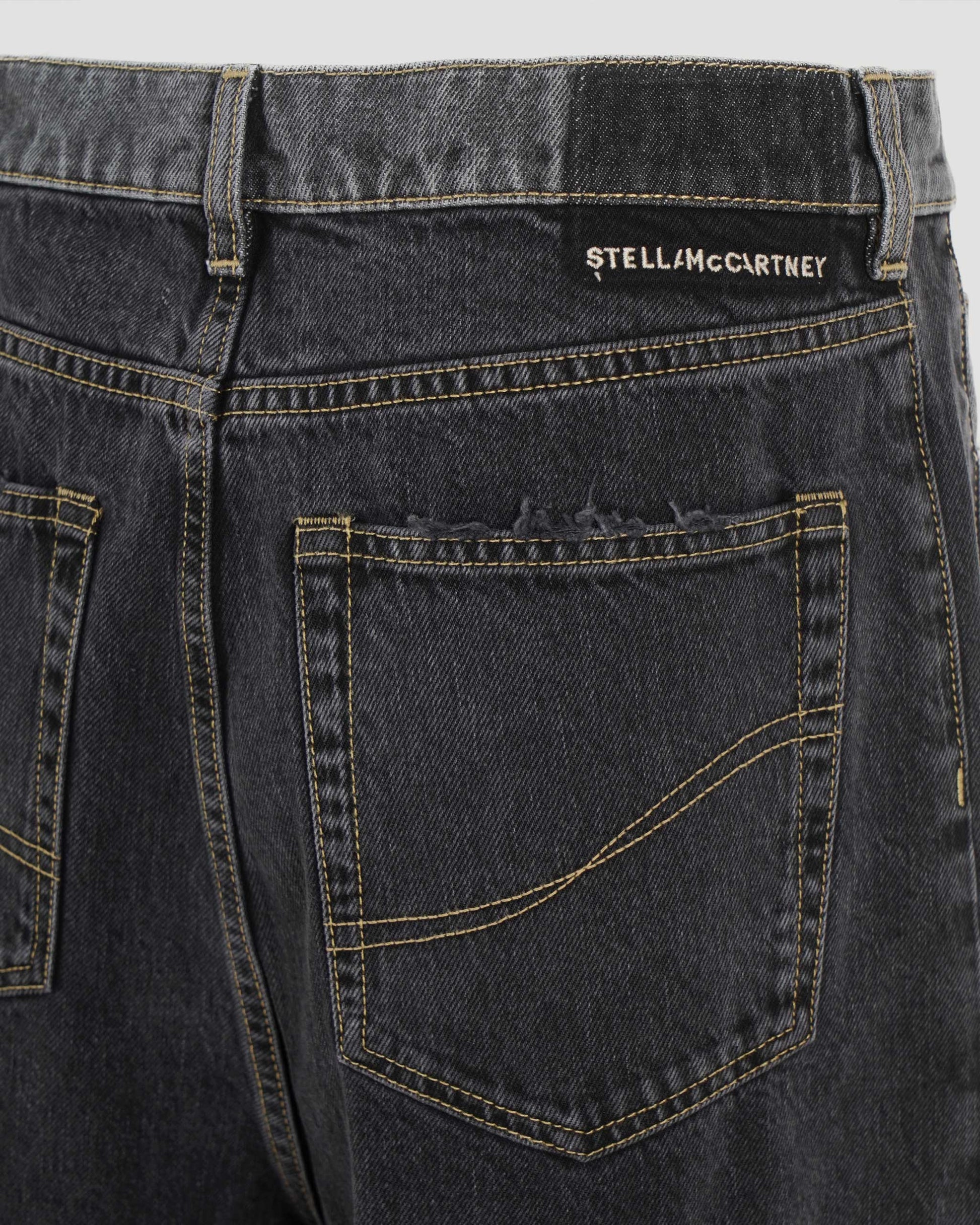 Crafted from double black denim, these wide-leg jeans by Stella McCartney feature a bold two-tone design. Cut with a high-rise waist and finished with raw-edge hems, the silhouette delivers a clean yet statement-making look with a deconstructed edge.