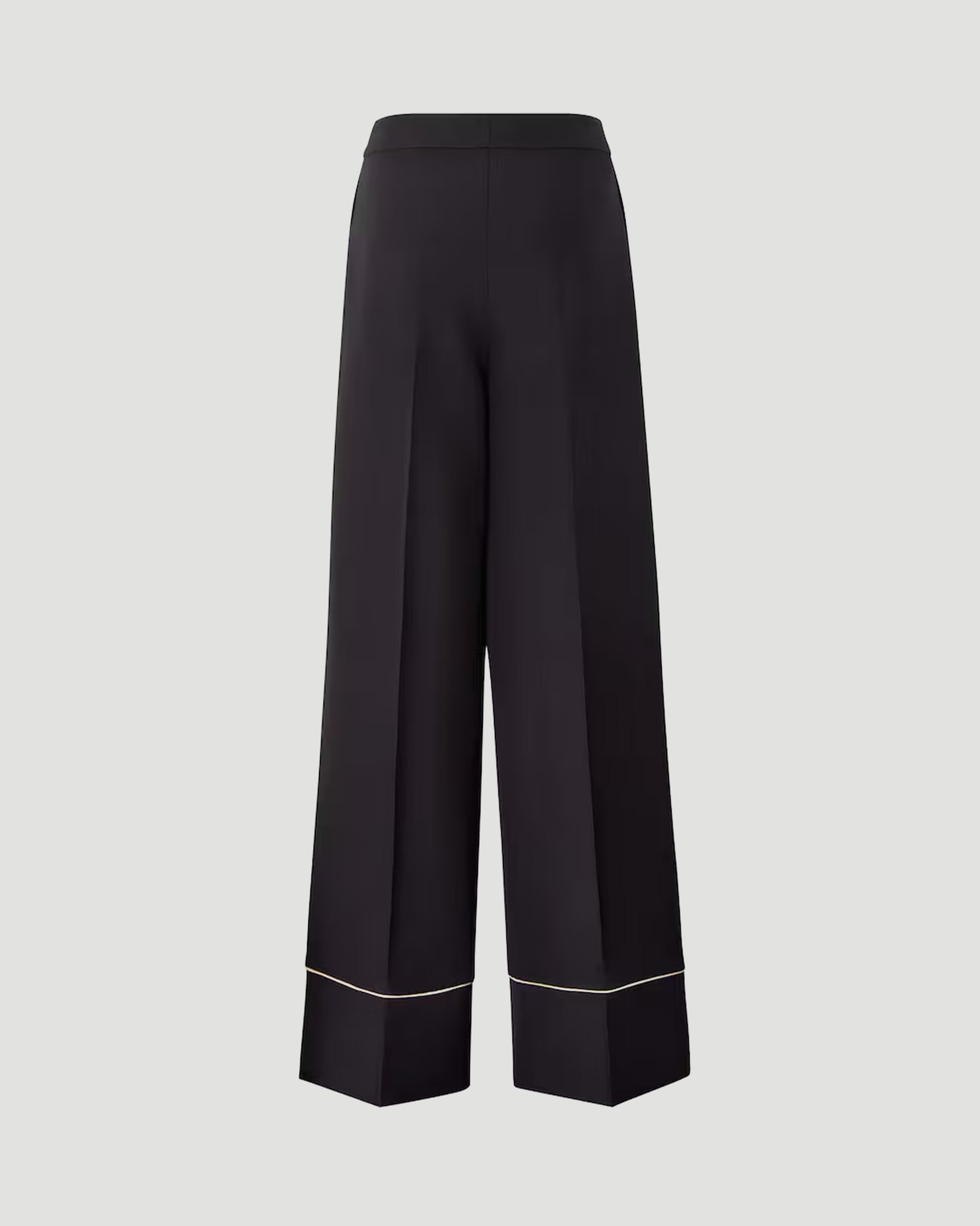 This high-waisted pyjama trousers is crafted from black wool and silk and features double front pleats. Designed with side pockets and a double fabric hem, it includes zip and hook fastening, contrast piping, and is made in Italy.