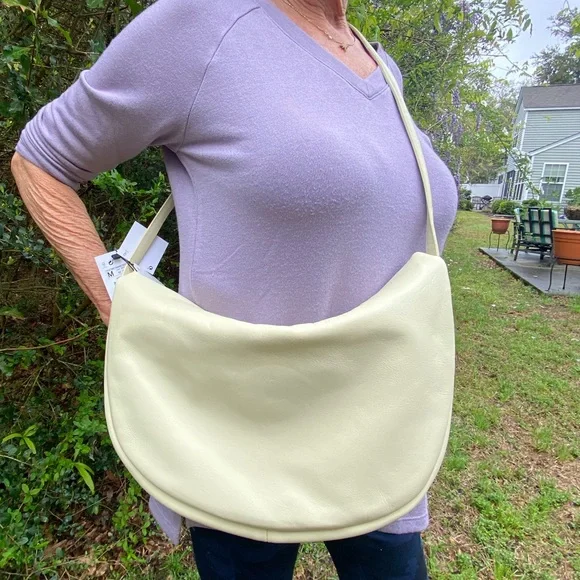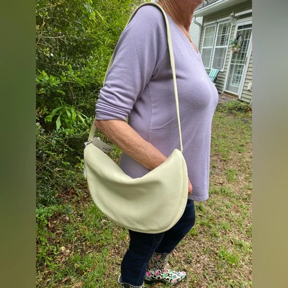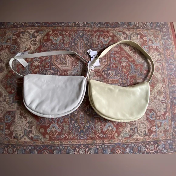⚡️LIMITED EDITION Leather crossbody bag⚡️💛 Half moon shape shoulder bag💛Lined interior, Magnetic closure💛Can be also worn as a clutch purse💛Color : light yellow 💛OUTER SHELL: 100% cow leather, 💛LINING: 100% cotton💛Height × Length x Width: 10.8 × 16.7 × 3 inches (27.5 × 42.5 x 7.5 cm)〰️BRAND NEW〰️**Plz note I have two of these fabulous bags for sale! The white and the yellow ! So spacious on the inside and very soft to the touch.Feels very luxurious. ⚡️💛🤍💛🤍⚡️